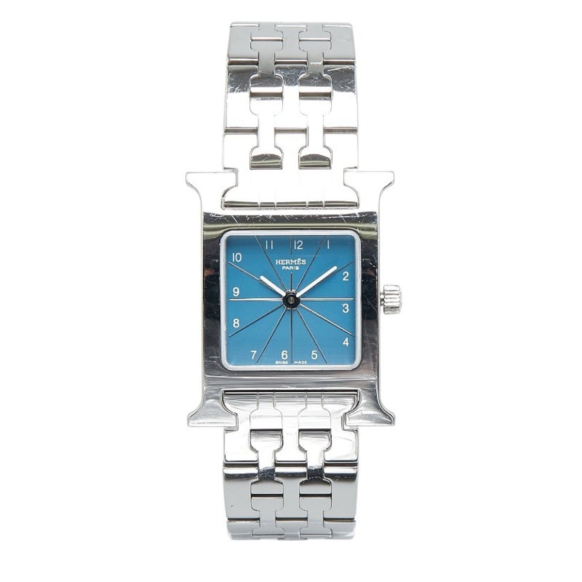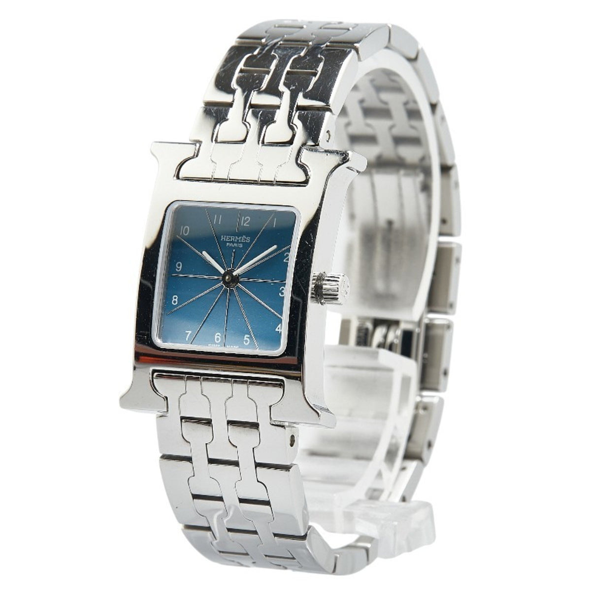 Montre Hermes H d'occasion HH1.210 à quartz, cadran bleu, acier inoxydable, pour femme.