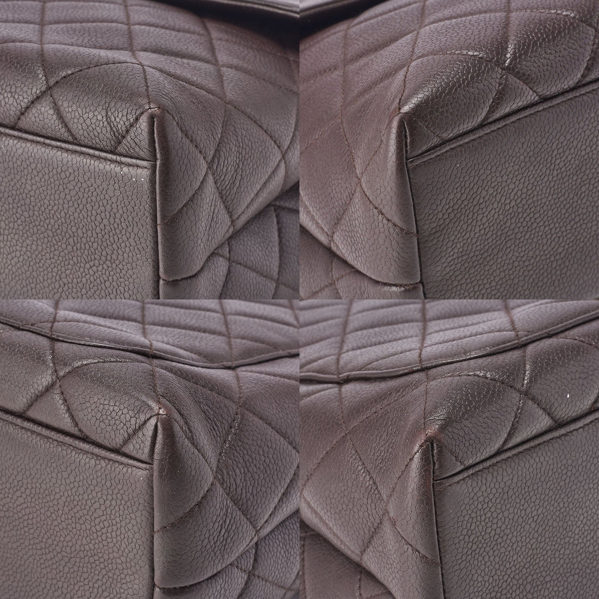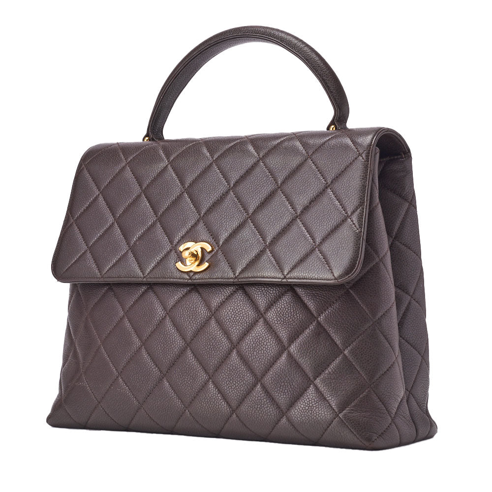 Sac à main d'occasion, matelassé, fermoir tournant, cuir caviar, marron, finitions dorées, d'occasion