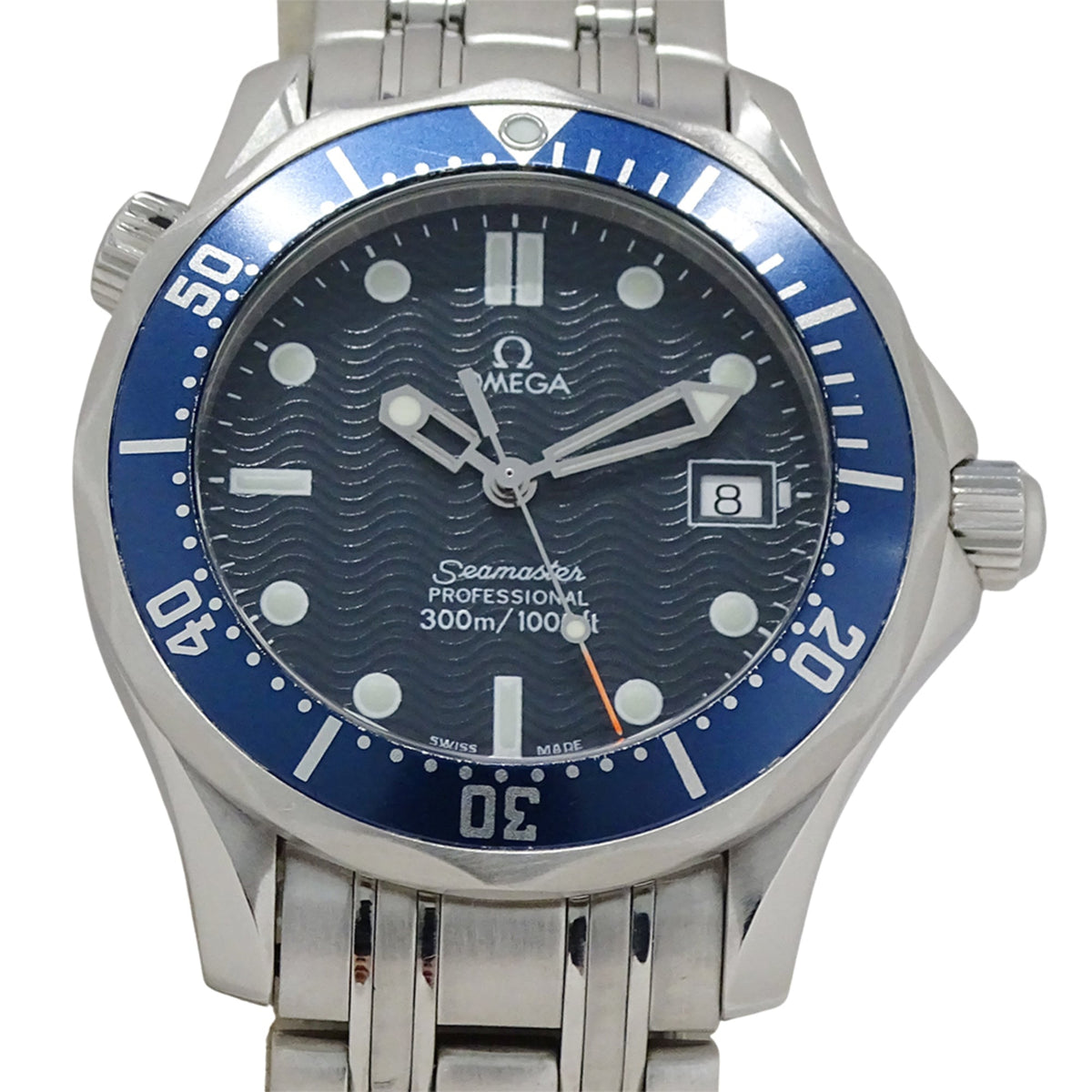 Pre-Owned OMEGA Seamaster 2561.80 Boys' Brand Professional Watch 300m Date Quartz QZ Stainless Steel SS Silver Blue Polished