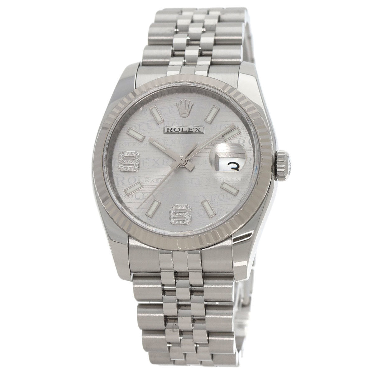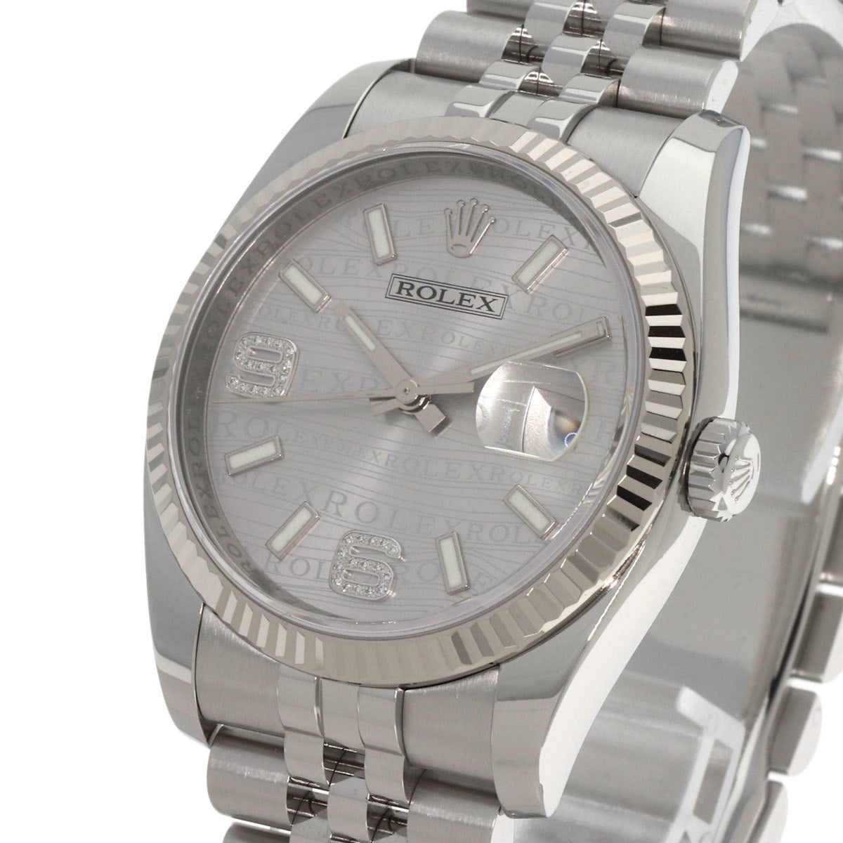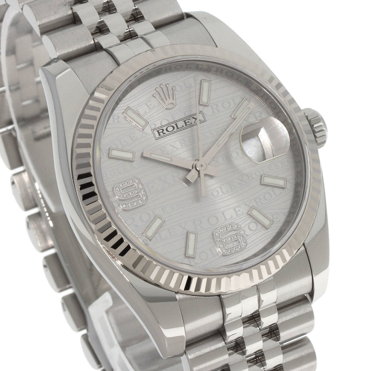 Montre Rolex Datejust 36 Wave Diamond d'occasion, modèle 116234, en acier inoxydable SS SSxK18WG, pour homme