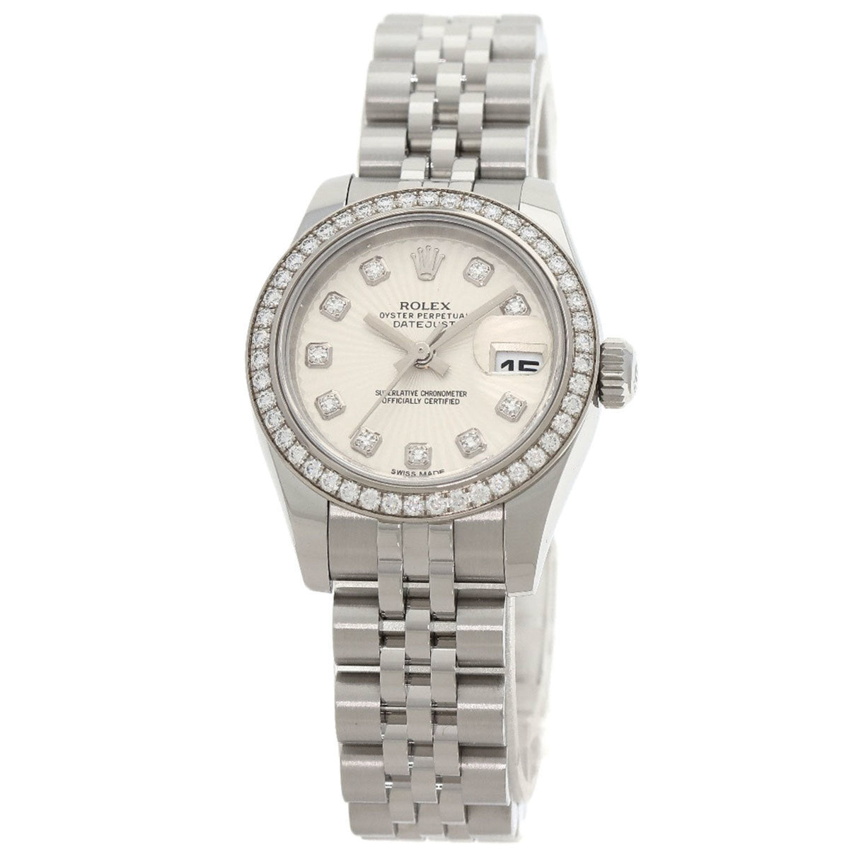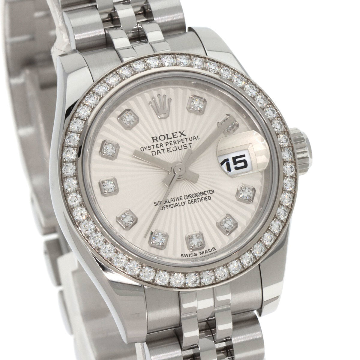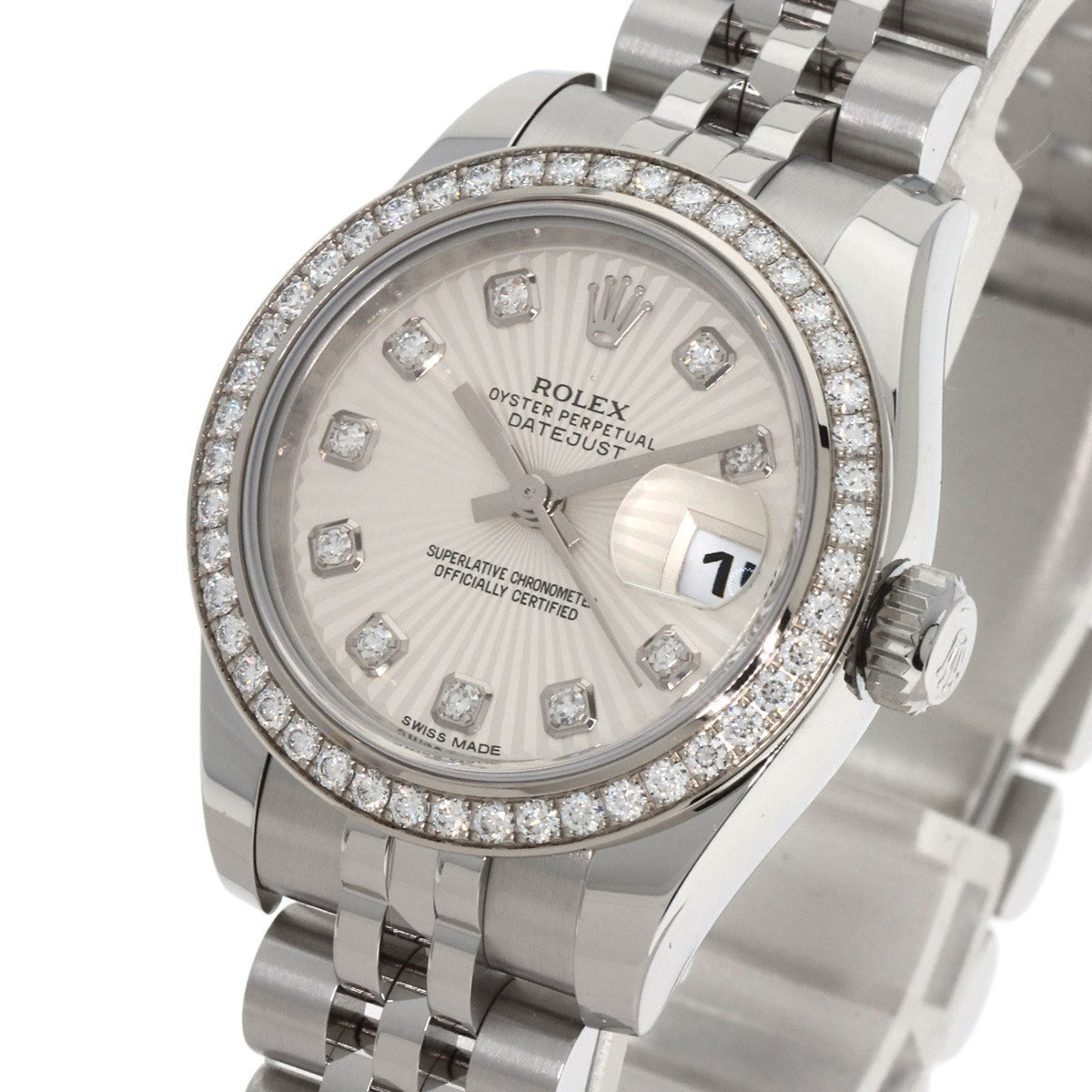Montre Rolex Datejust 10P d'occasion en acier inoxydable avec diamants pour femme (modèle 179384G)