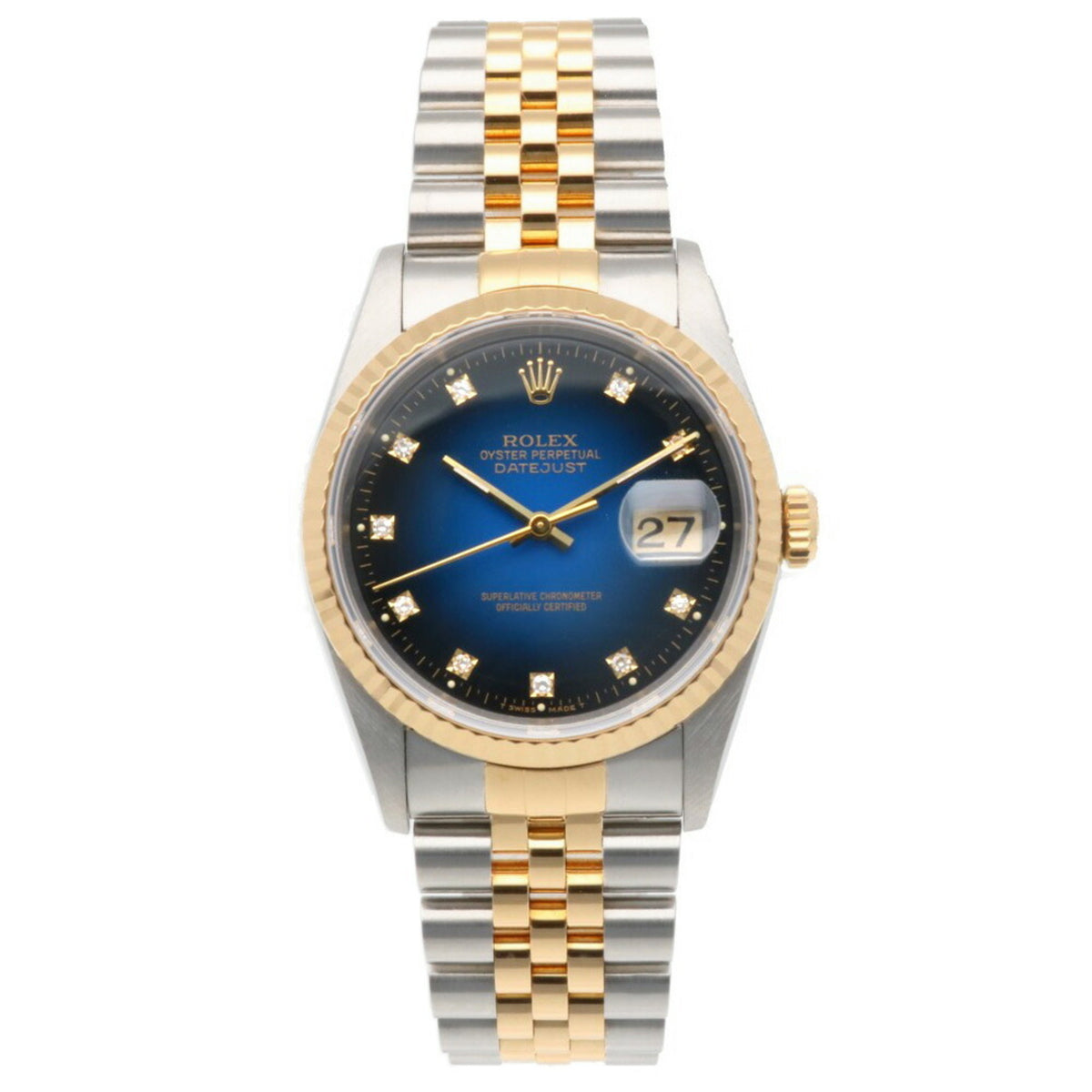 Pre-Owned Rolex Datejust Oyster Perpetual Watch, Stainless Steel, 16233, Automatic, Overhauled and Refinished, S-Serial, Men's, 10 Diamonds, Blue Gradient