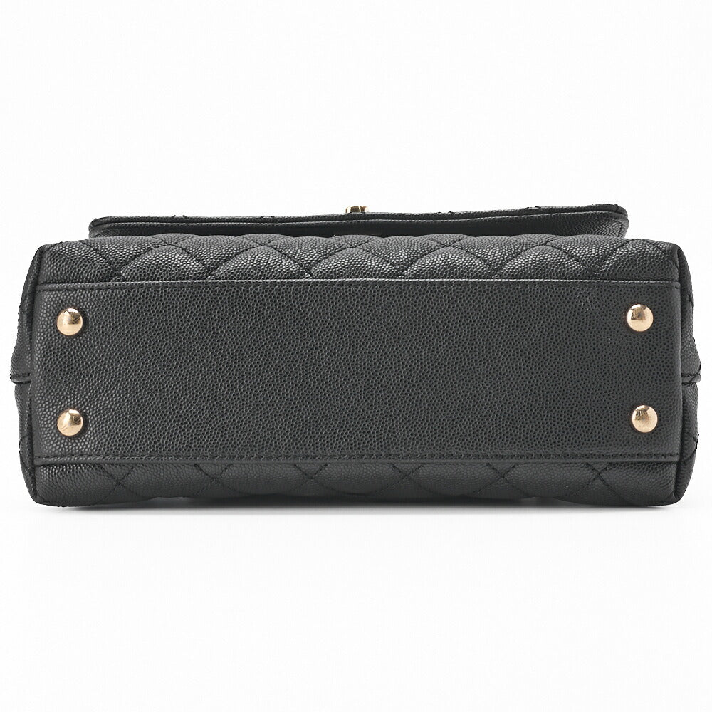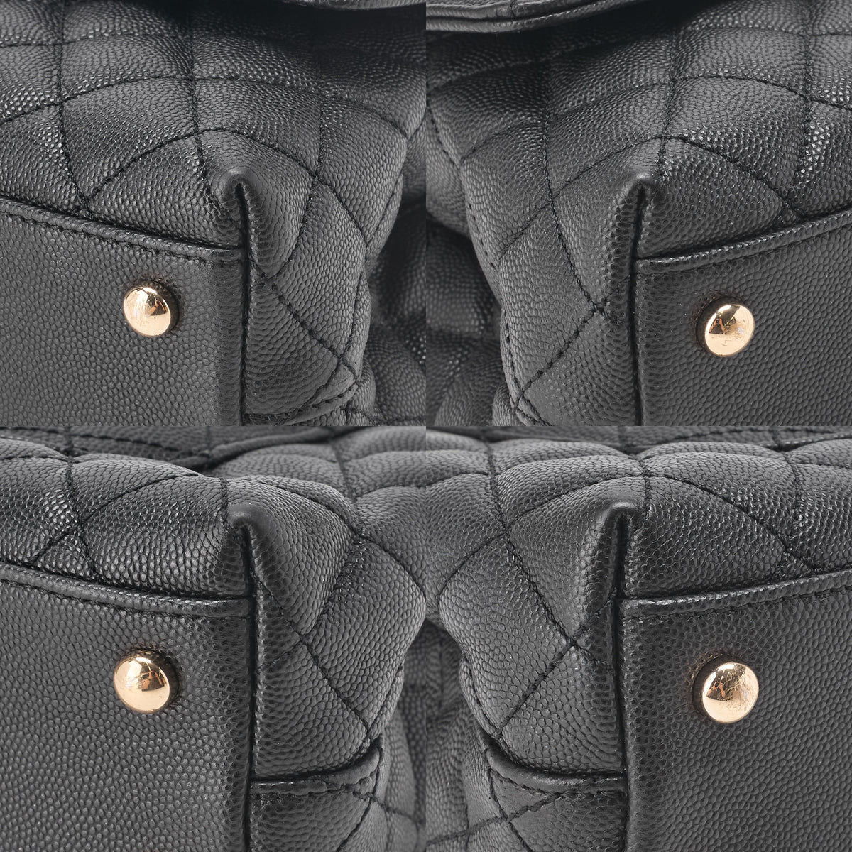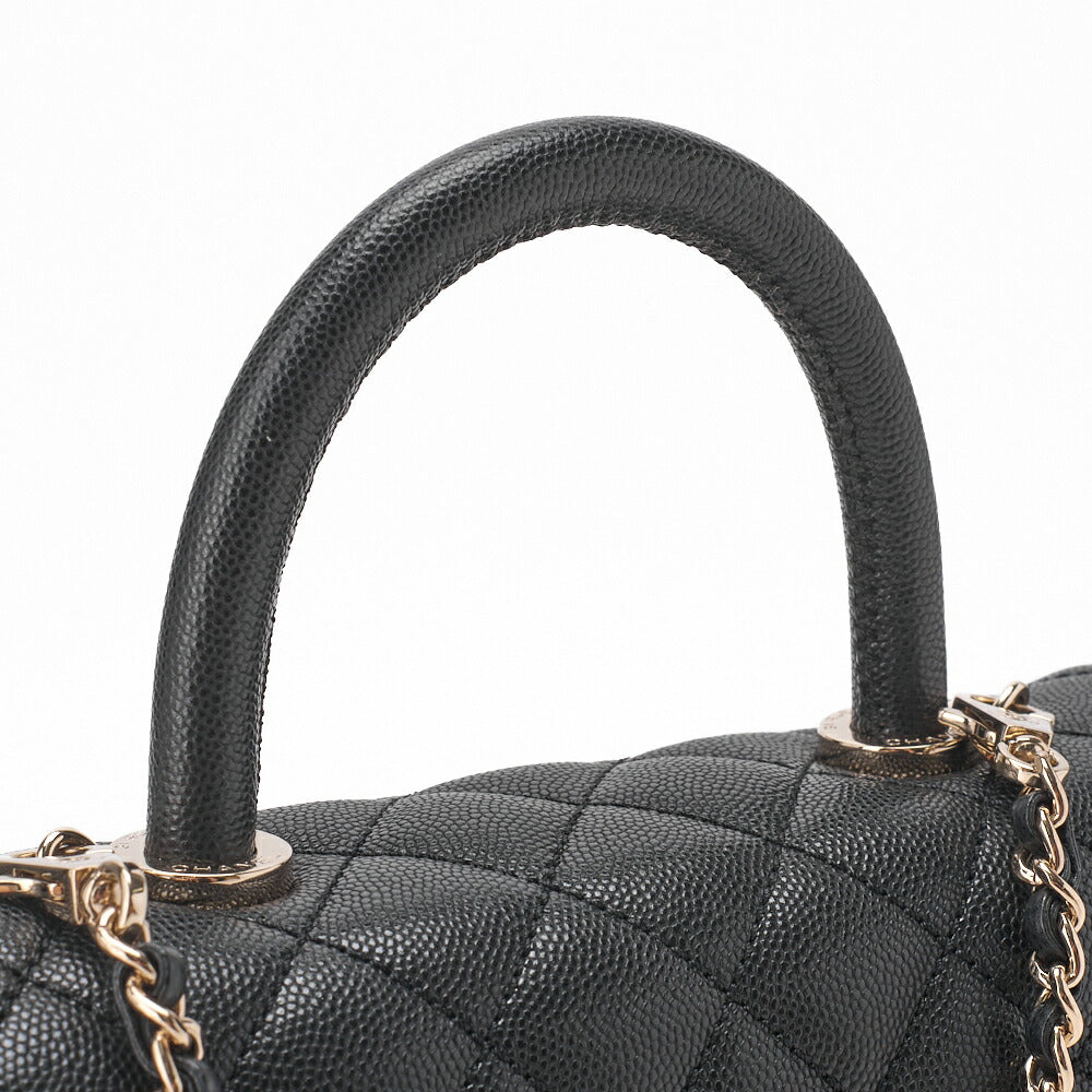 Sac à main d'occasion en cuir matelassé avec anse en coco, 2 voies, cuir caviar, noir, matériel doré.
