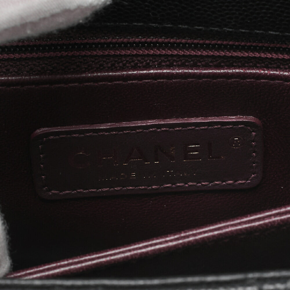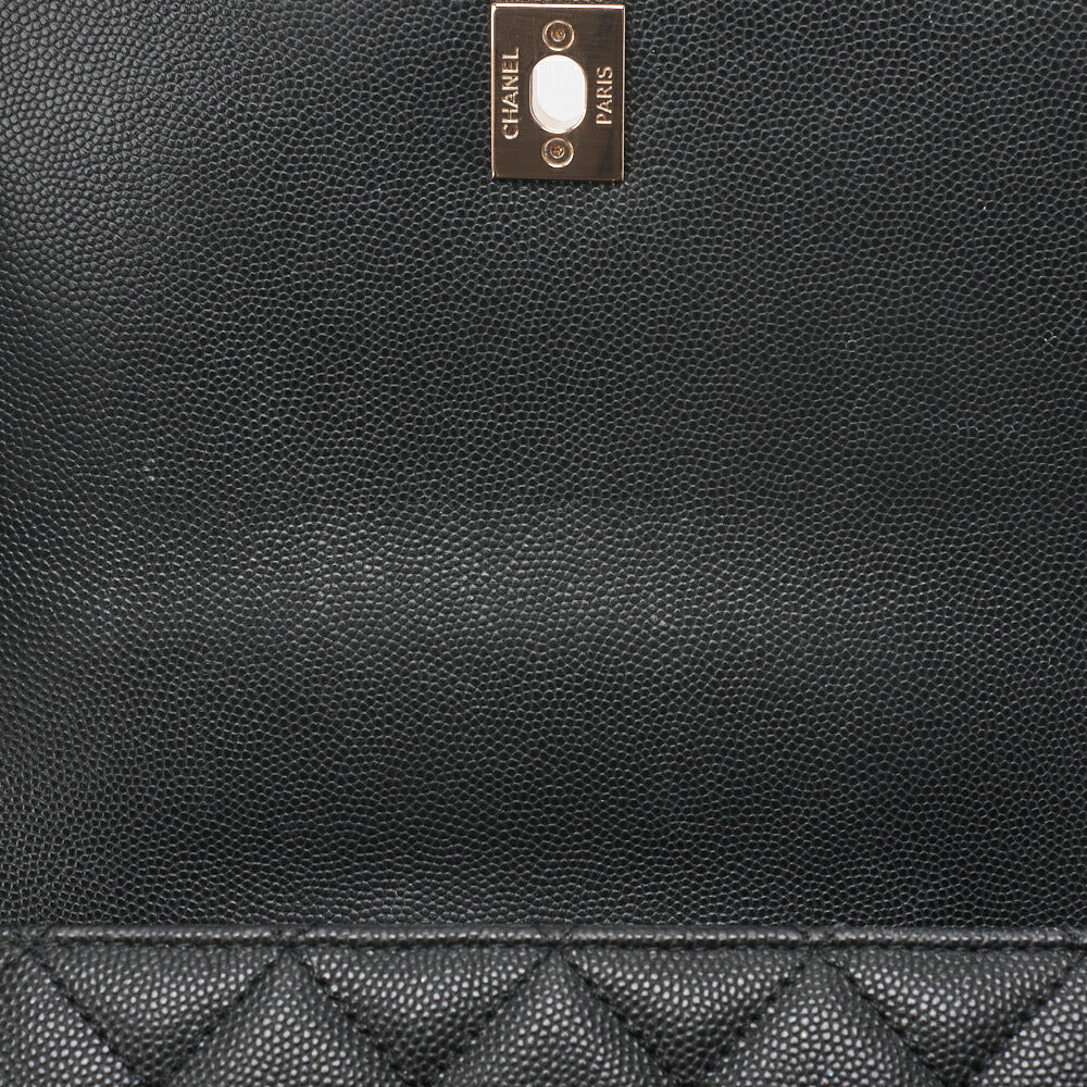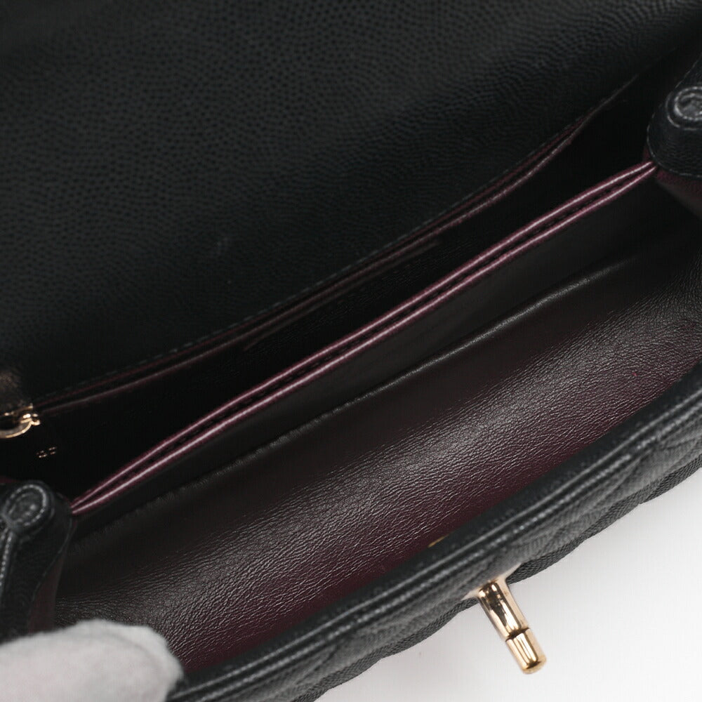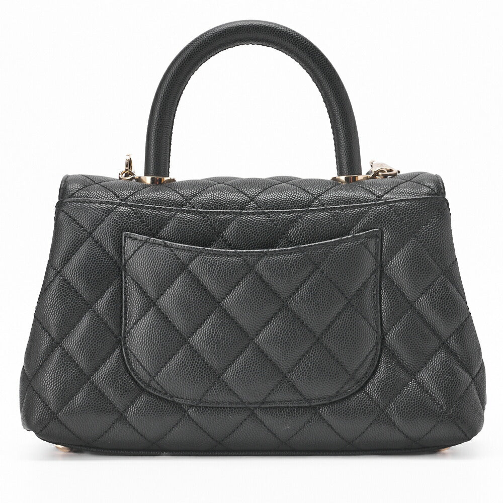 Sac à main d'occasion en cuir matelassé avec anse en coco, 2 voies, cuir caviar, noir, matériel doré.