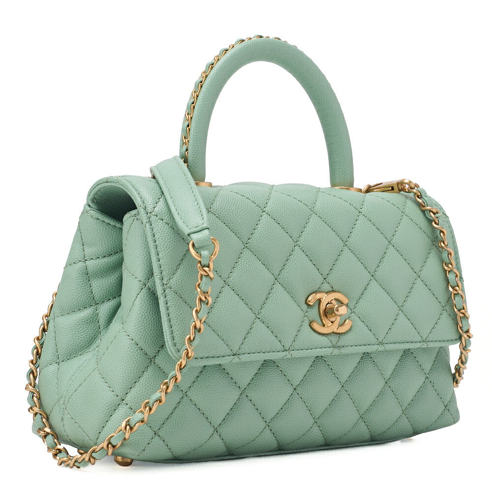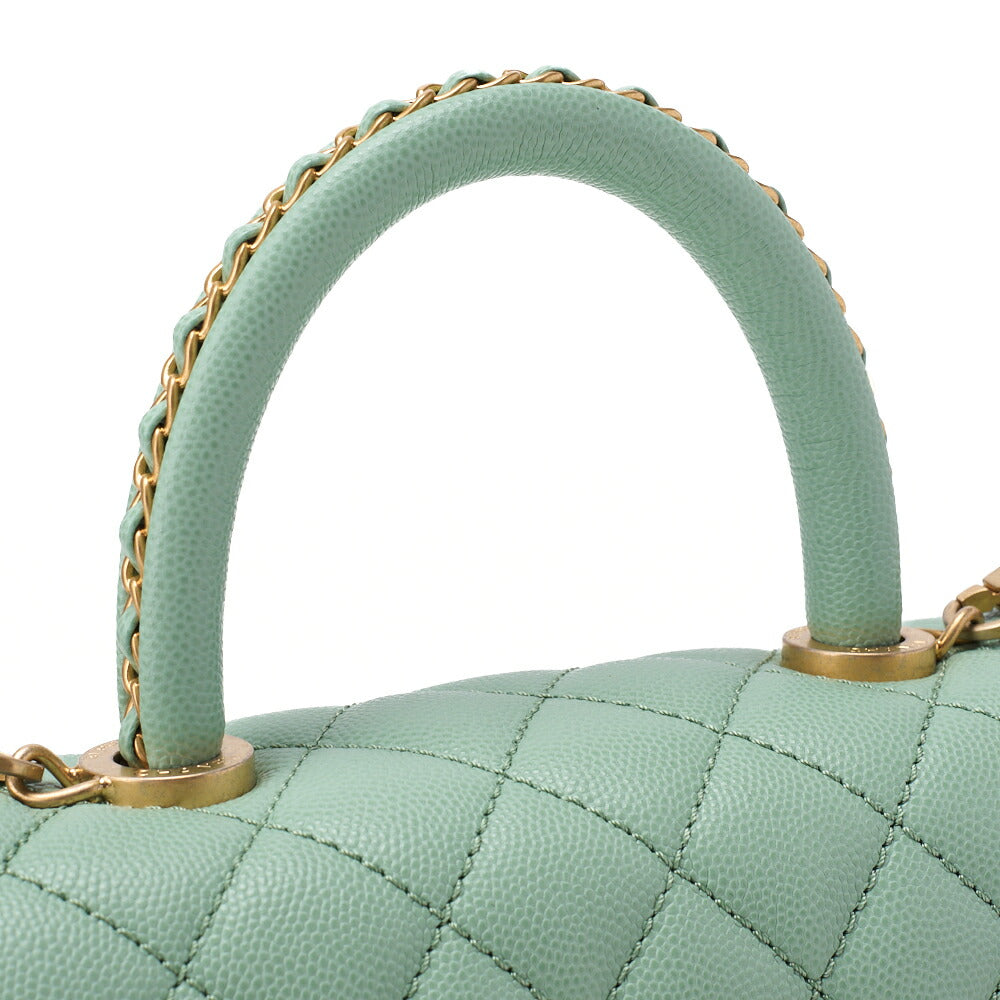 Découvrez le luxueux sac à main Chanel Matlasse Coco Handle 2WAY , conçu pour offrir élégance et polyvalence en toute occasion. Ce sac raffiné, confectionné en cuir caviar premium, arbore une superbe teinte verte rehaussée de finitions en métal doré, ce qui en fait une pièce unique qui sublimera votre style sans effort.