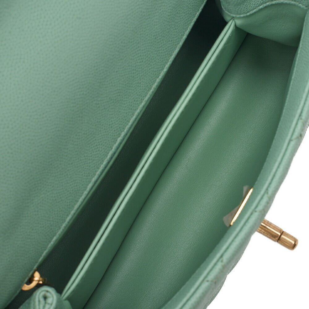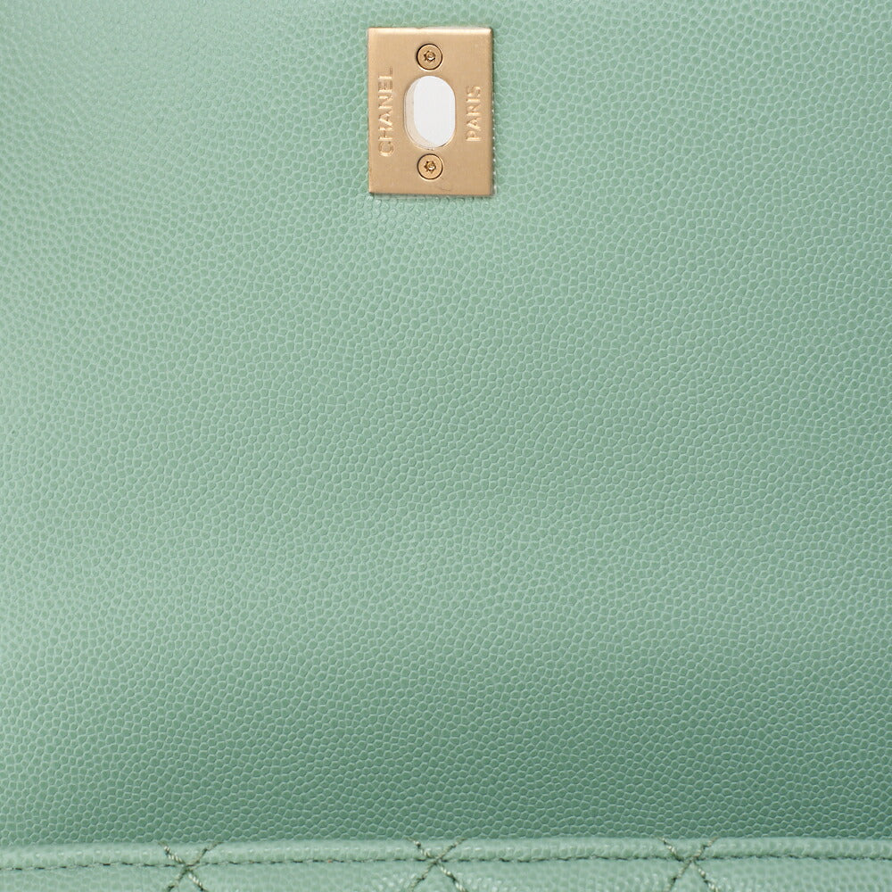 Sac à main bandoulière Matlasse Coco, poignée 2 voies, cuir caviar vert, accessoires dorés, d'occasion