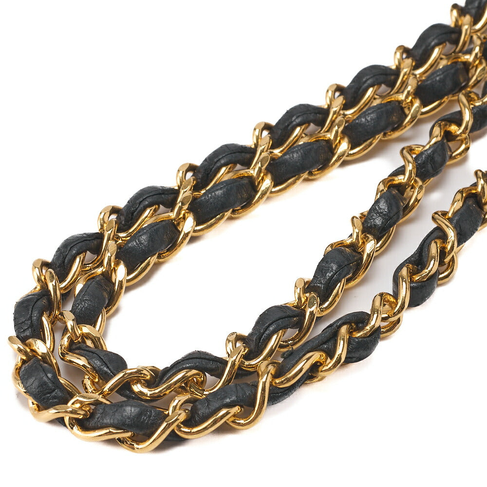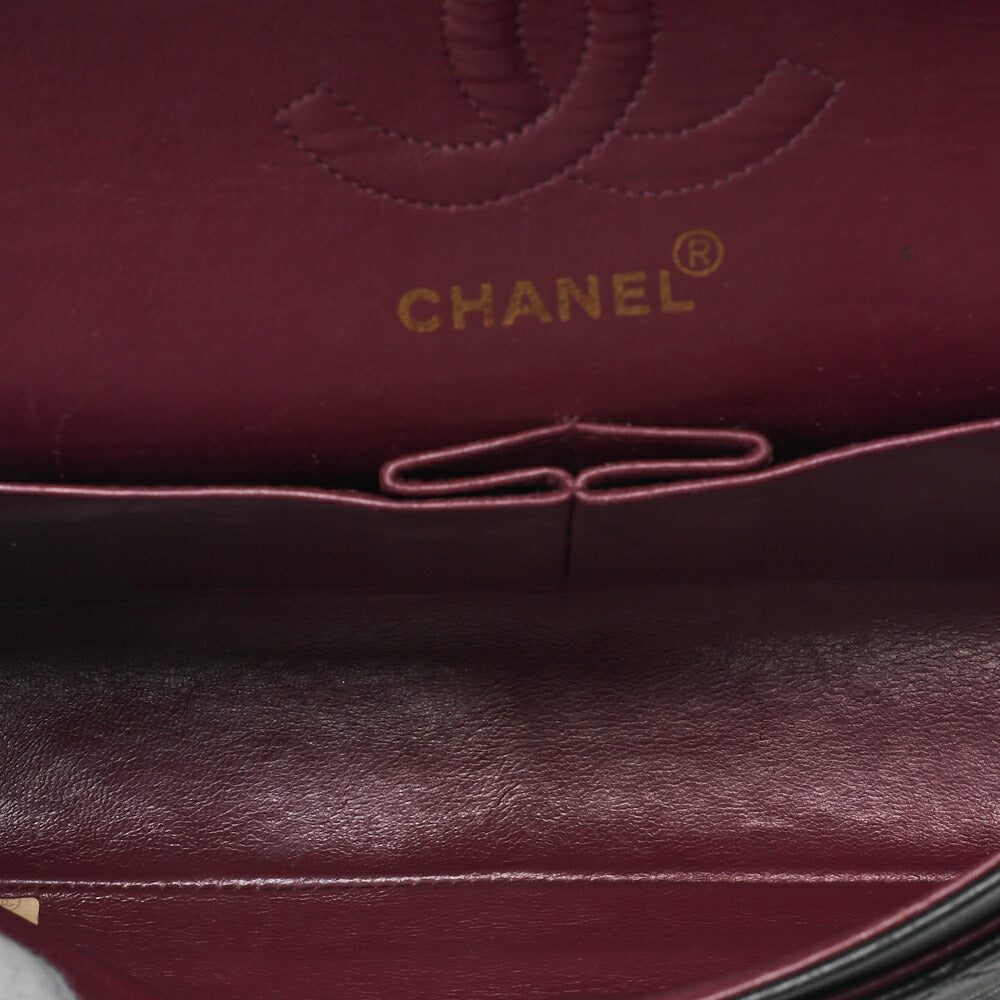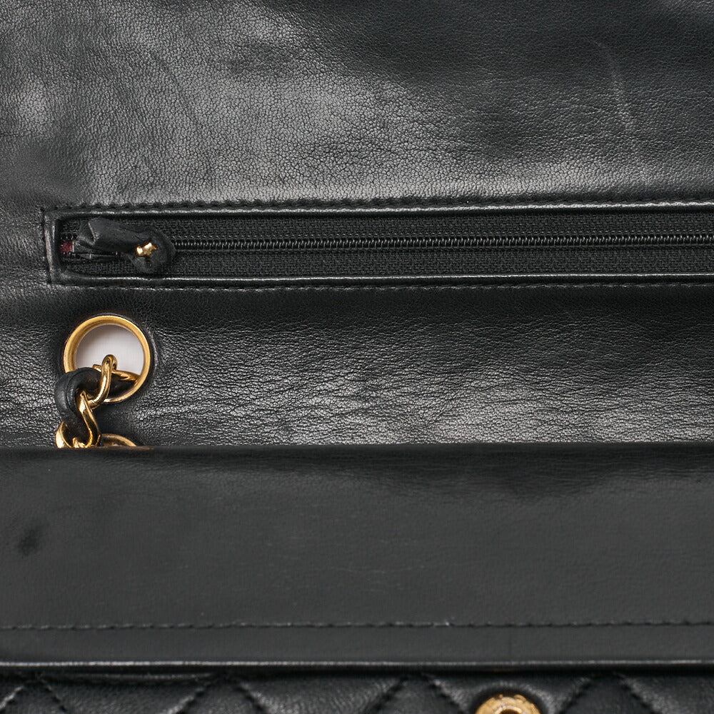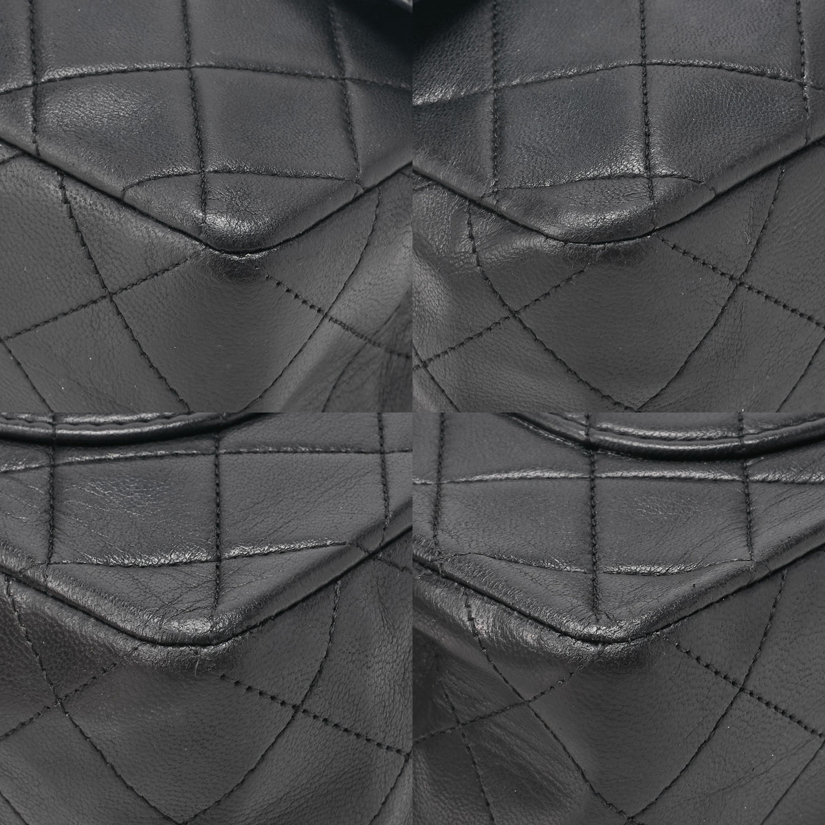Sac bandoulière d'occasion Matelasse 23, double rabat, chaîne, cuir d'agneau noir, accessoires dorés.