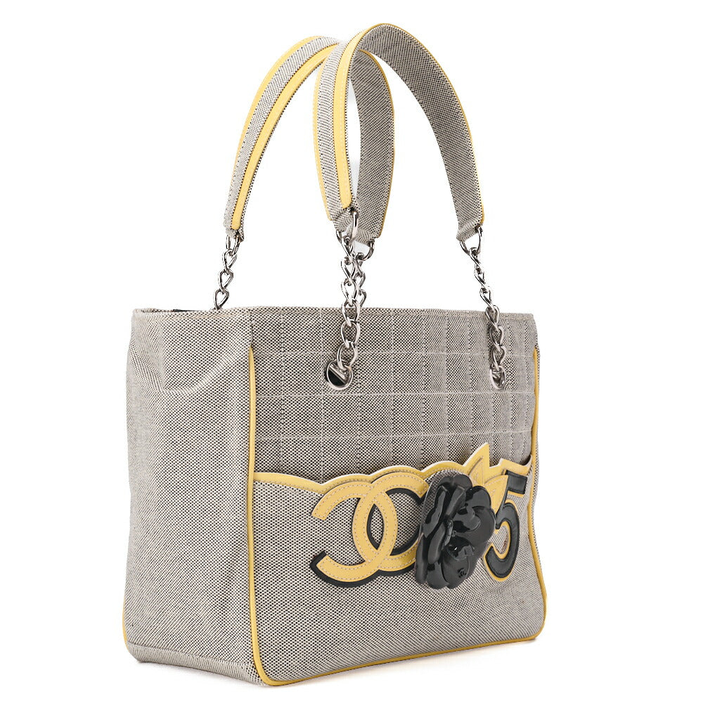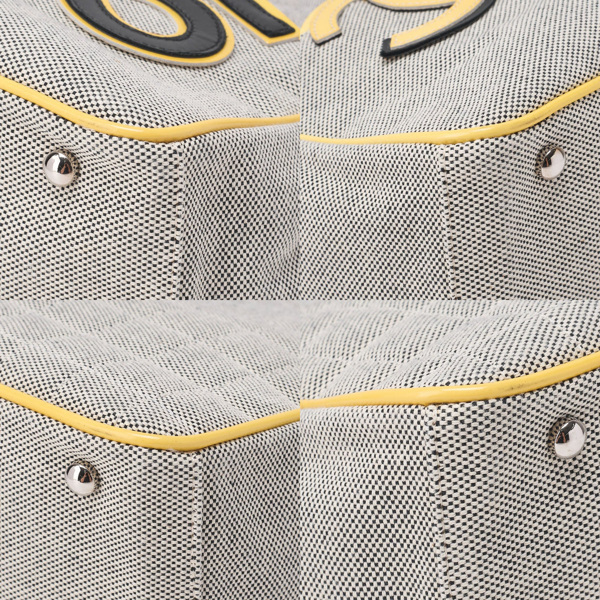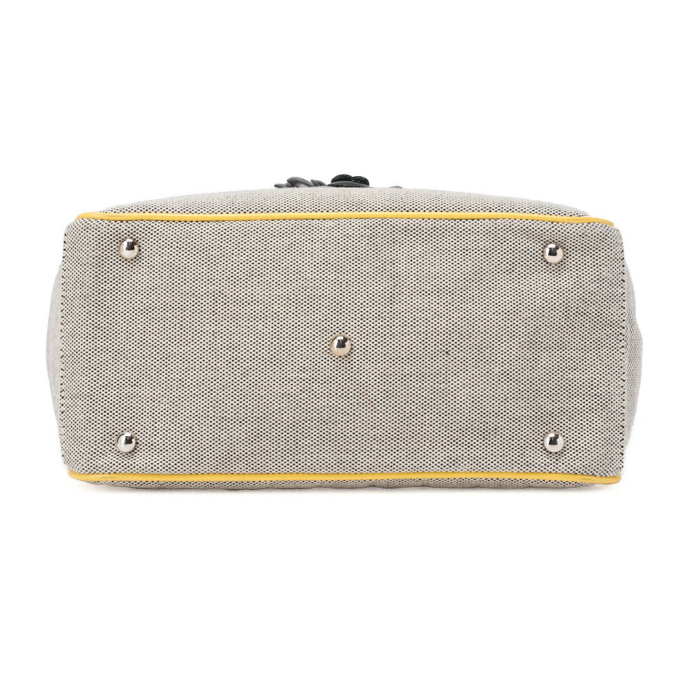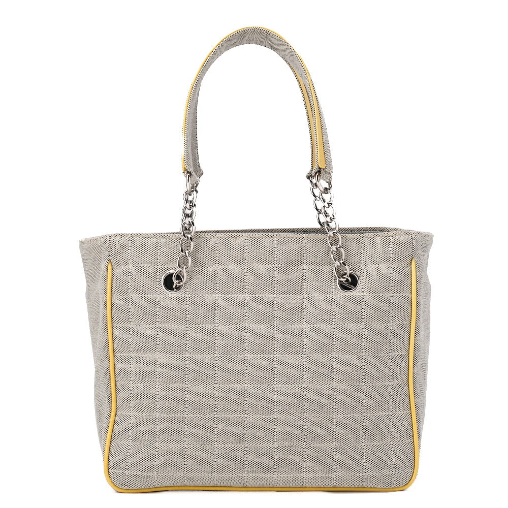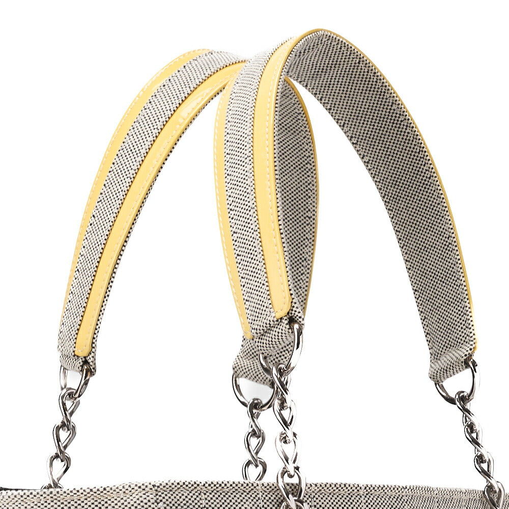 Sac fourre-tout d'occasion en toile Camellia Choco Bar, gris × jaune, finitions argentées.