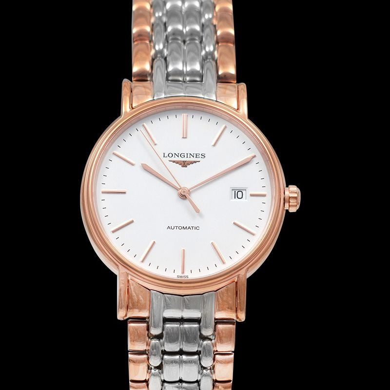 Pr?sence ? Cadran blanc mat 38,50 mm en acier inoxydable, revêtement PVD rouge L49211127