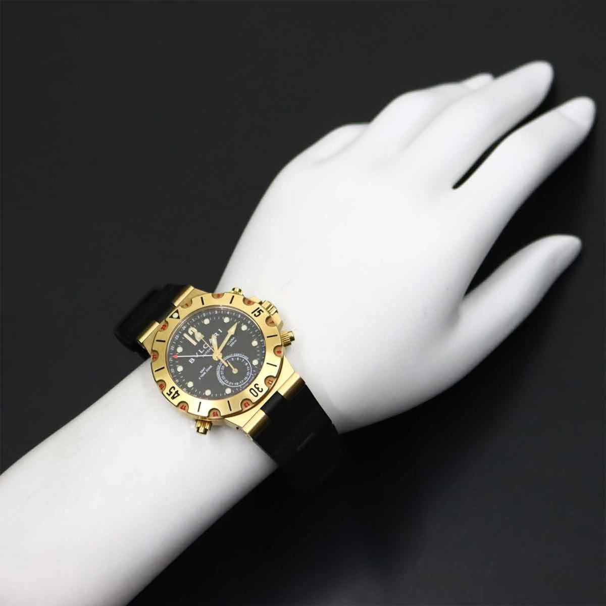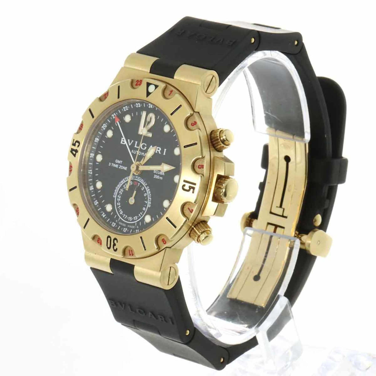 Pre-Owned BVLGARI Diagono Scuba GMT SD38GGMT Men's Watch Date Black K18YG Yellow Gold Automatic Self-Winding