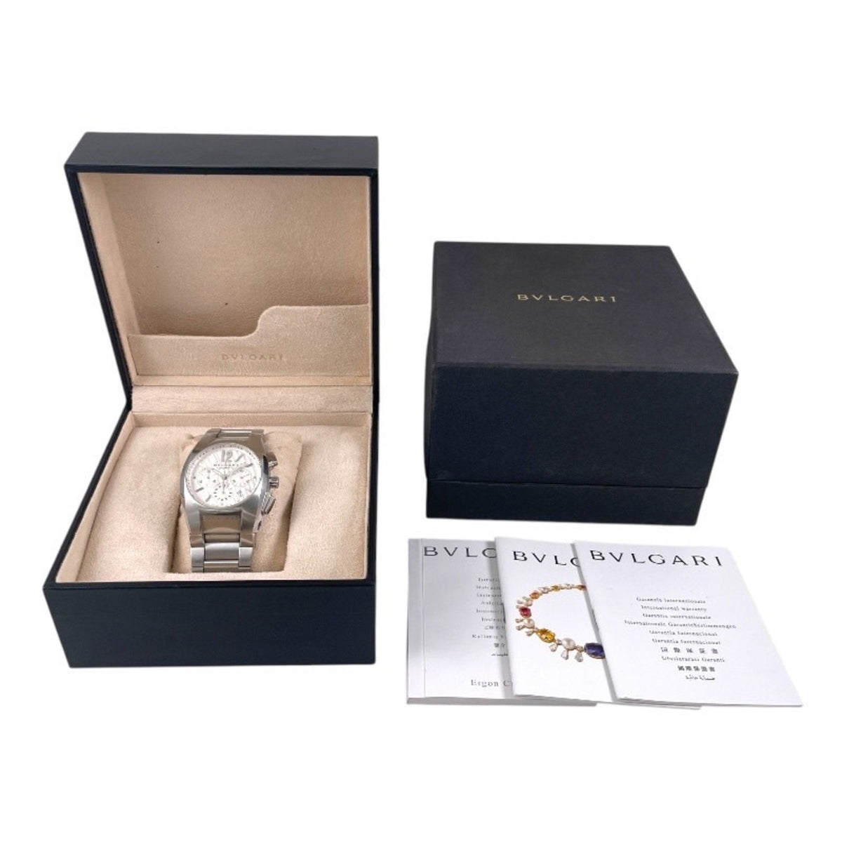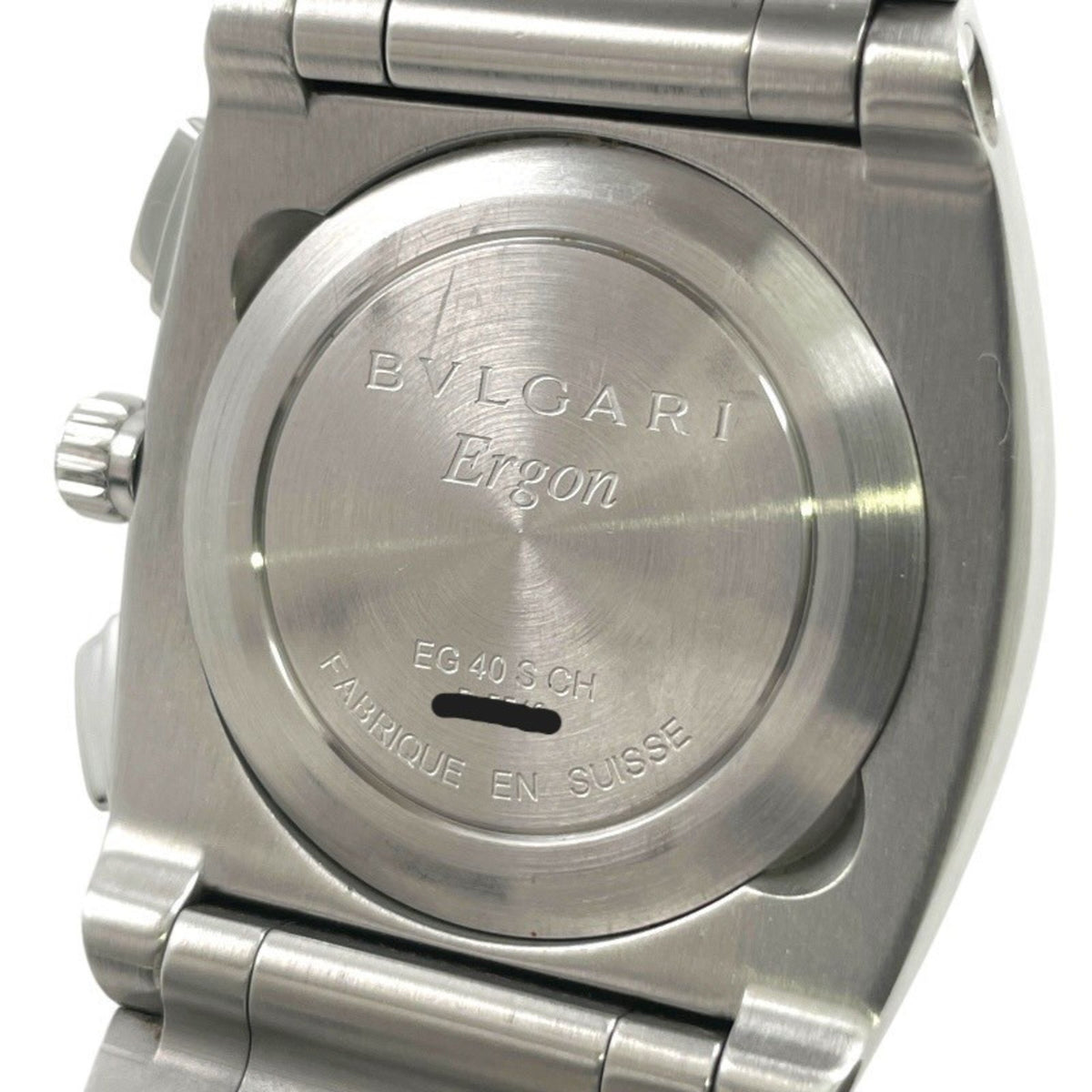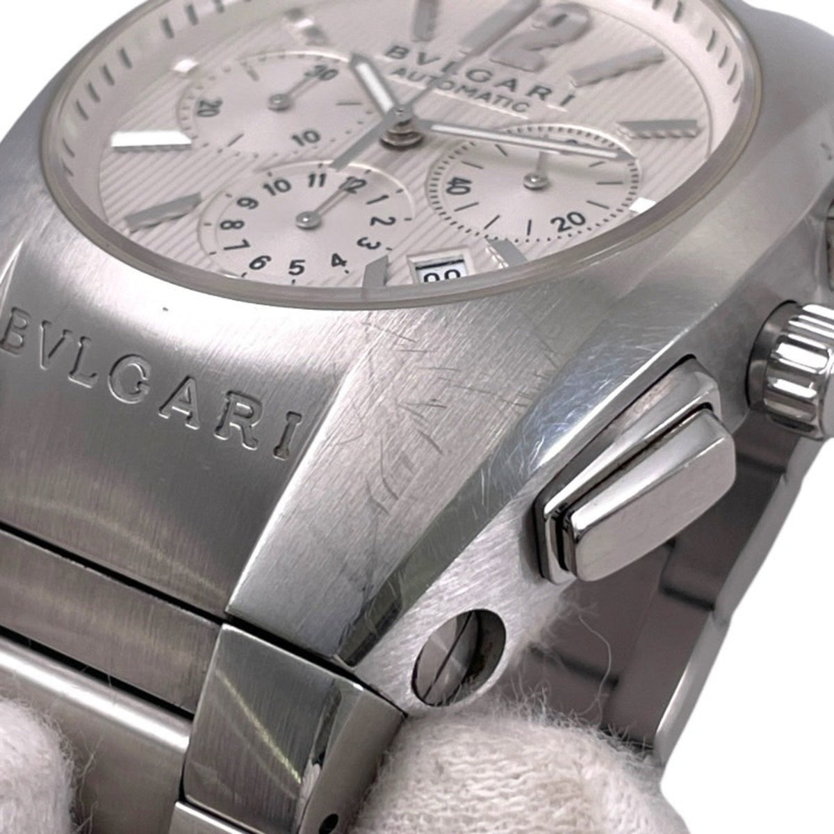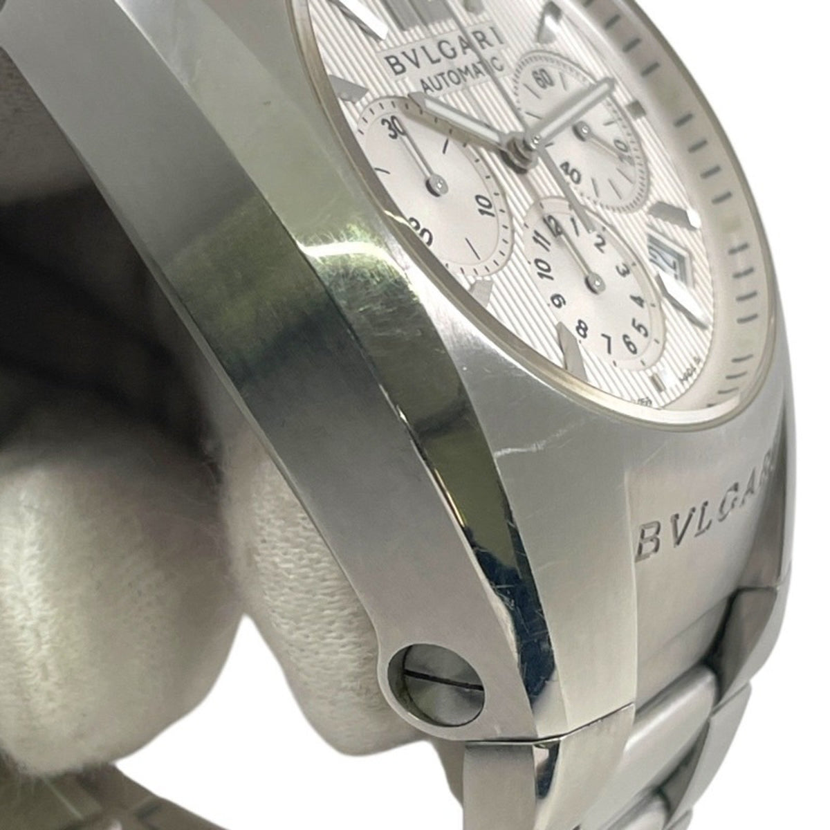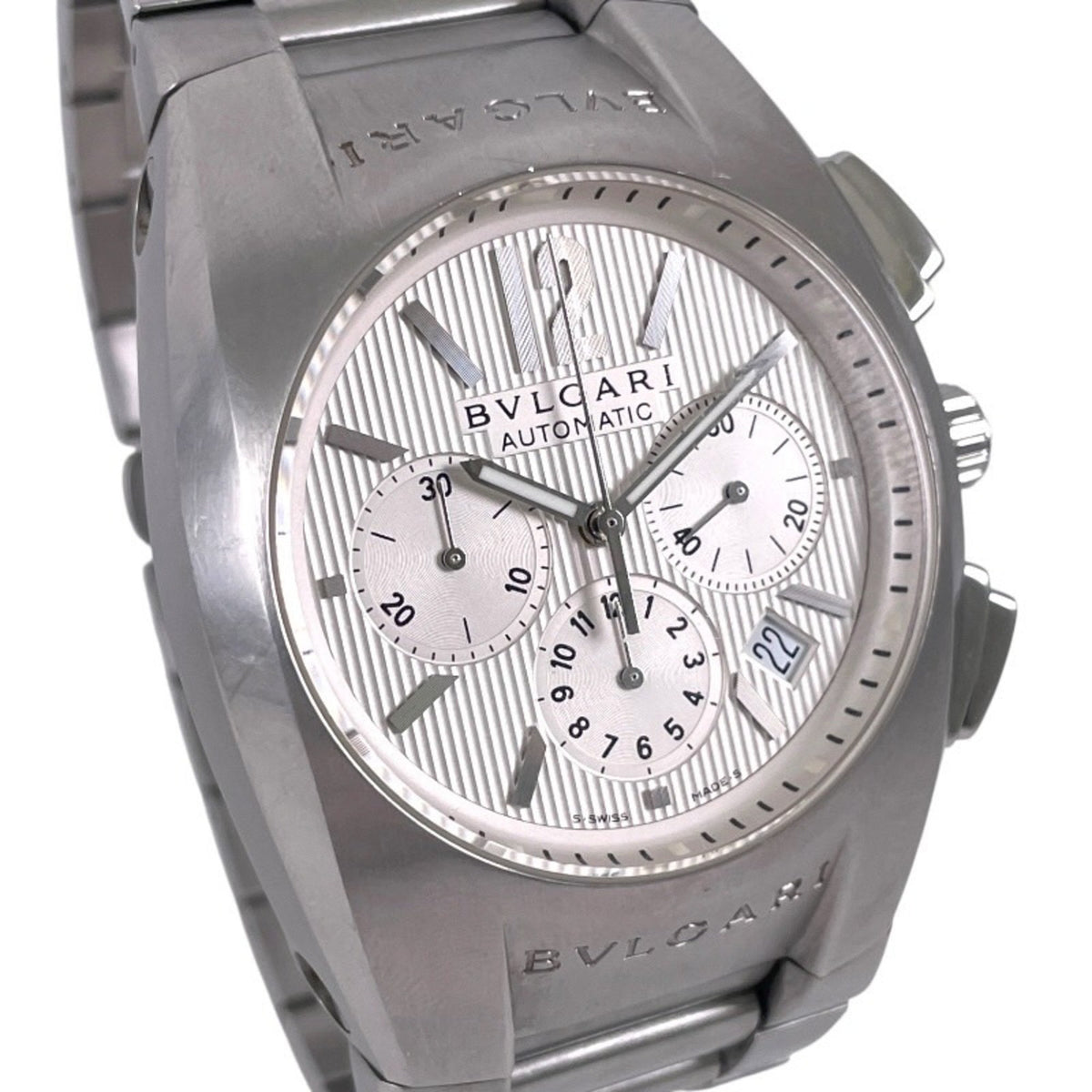 Pre-Owned BVLGARI Ergon Chronograph EG40SCH Men's Stainless Steel Watch with White Dial and Date Display, Automatic Movement