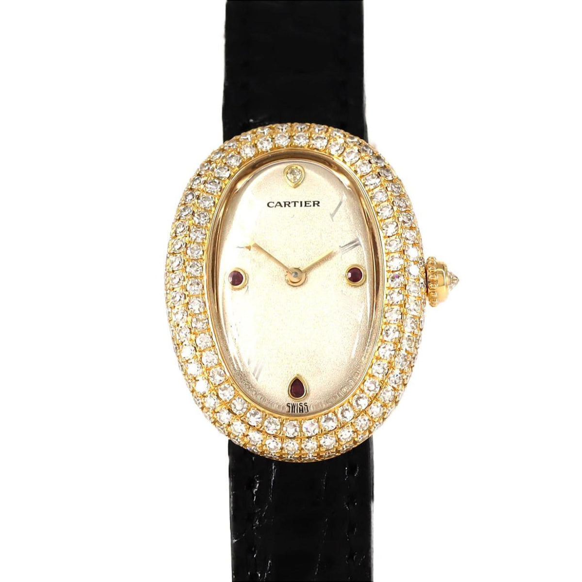 Pre-Owned Cartier Baignoire Yellow Gold 3D 1P&3R WB502751 Quartz Watch