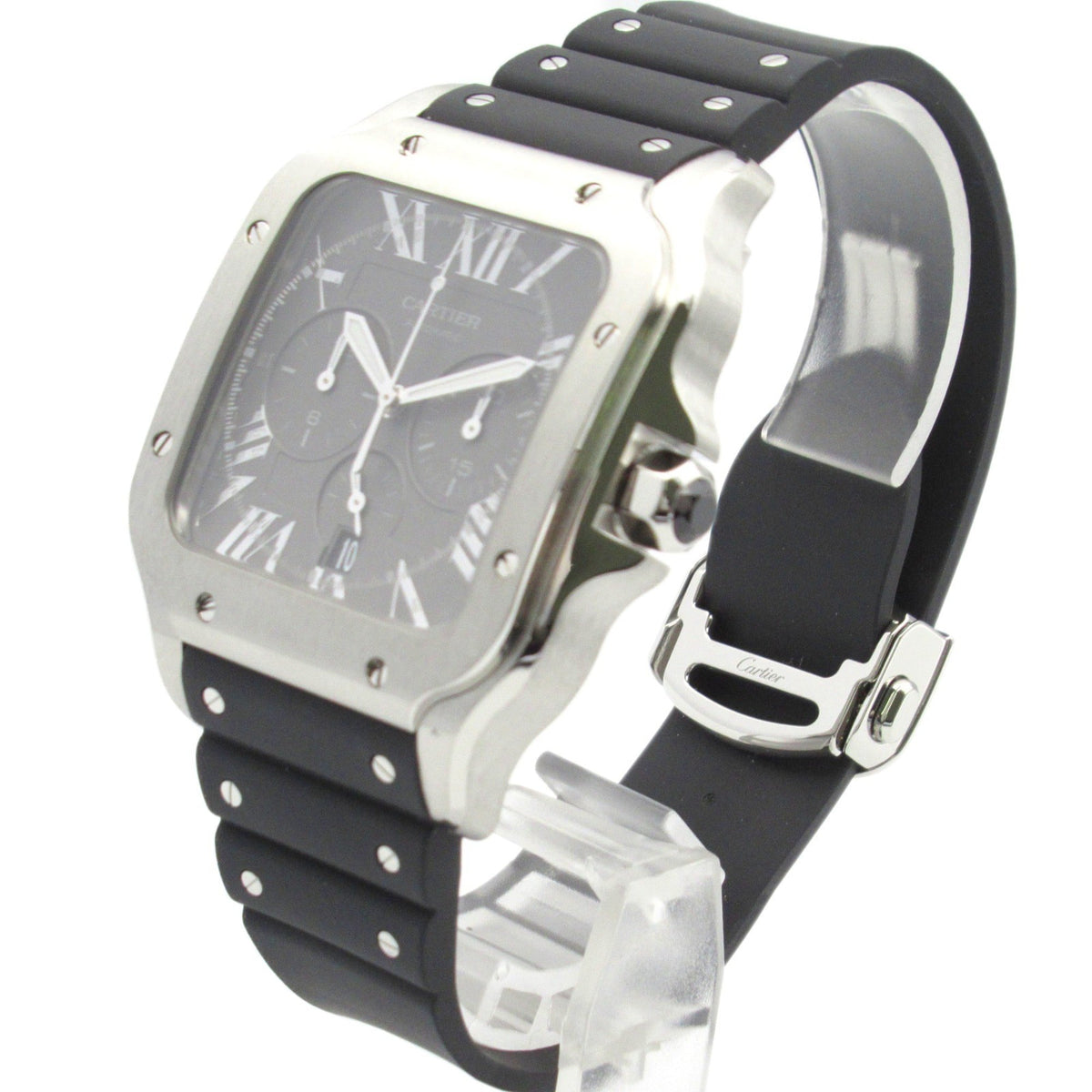 Pre-Owned Cartier Santos de Chronograph XL Men's Watch in Stainless Steel with Rubber Strap, Gray (WSSA0078)