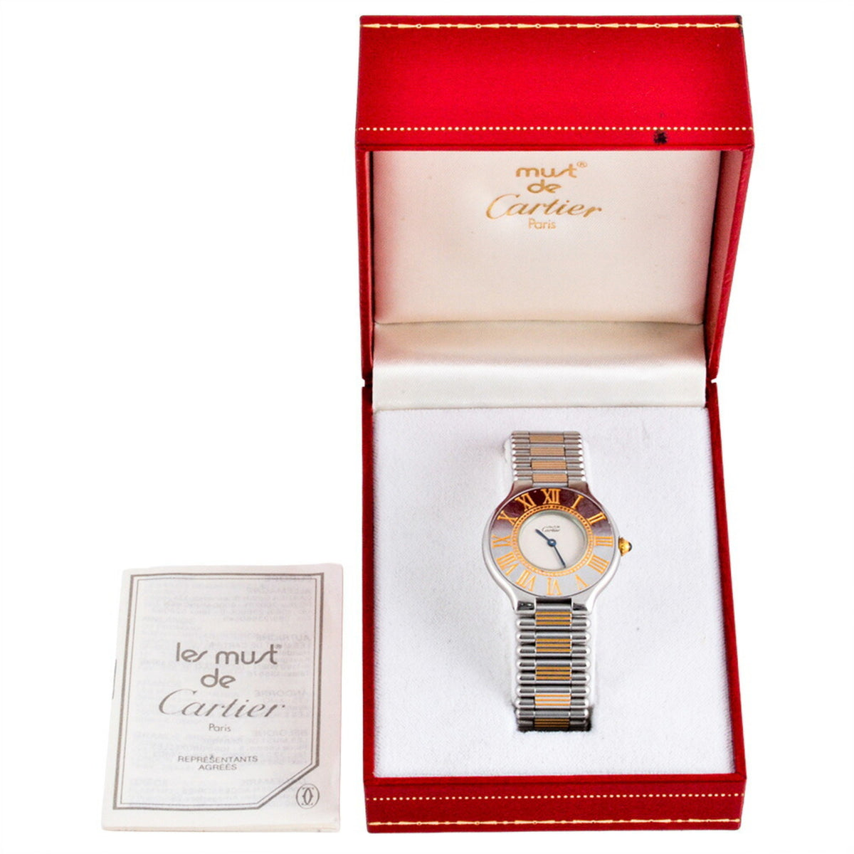 Pre-Owned Cartier W10050F4 Vantianne Must 21 Quartz Watch with Ivory Dial for Men