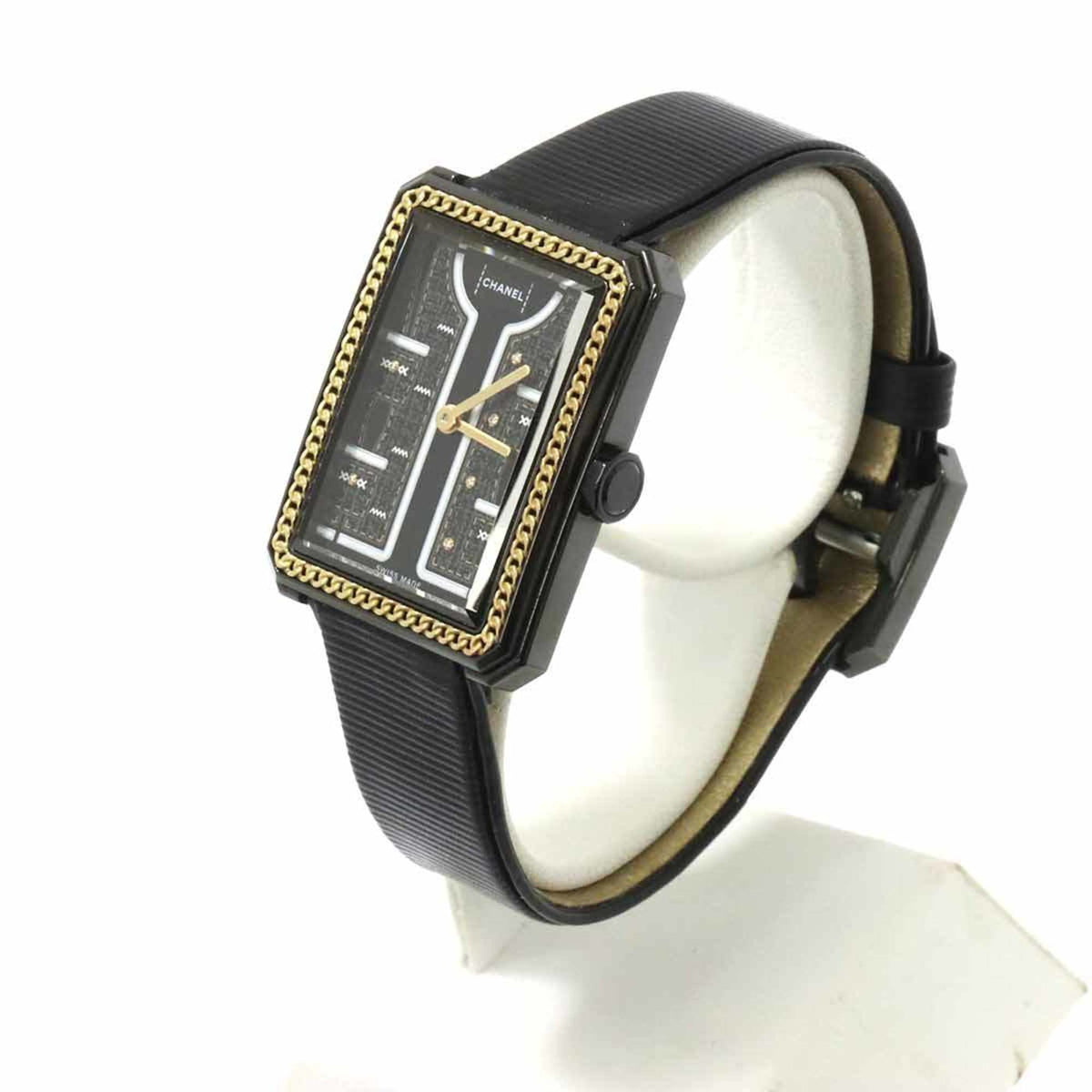 Pre-Owned CHANEL Boy Friend Couture Two-tone Watch H9834 Women's with 8 Diamonds and Black 18K White Gold Quartz Movement