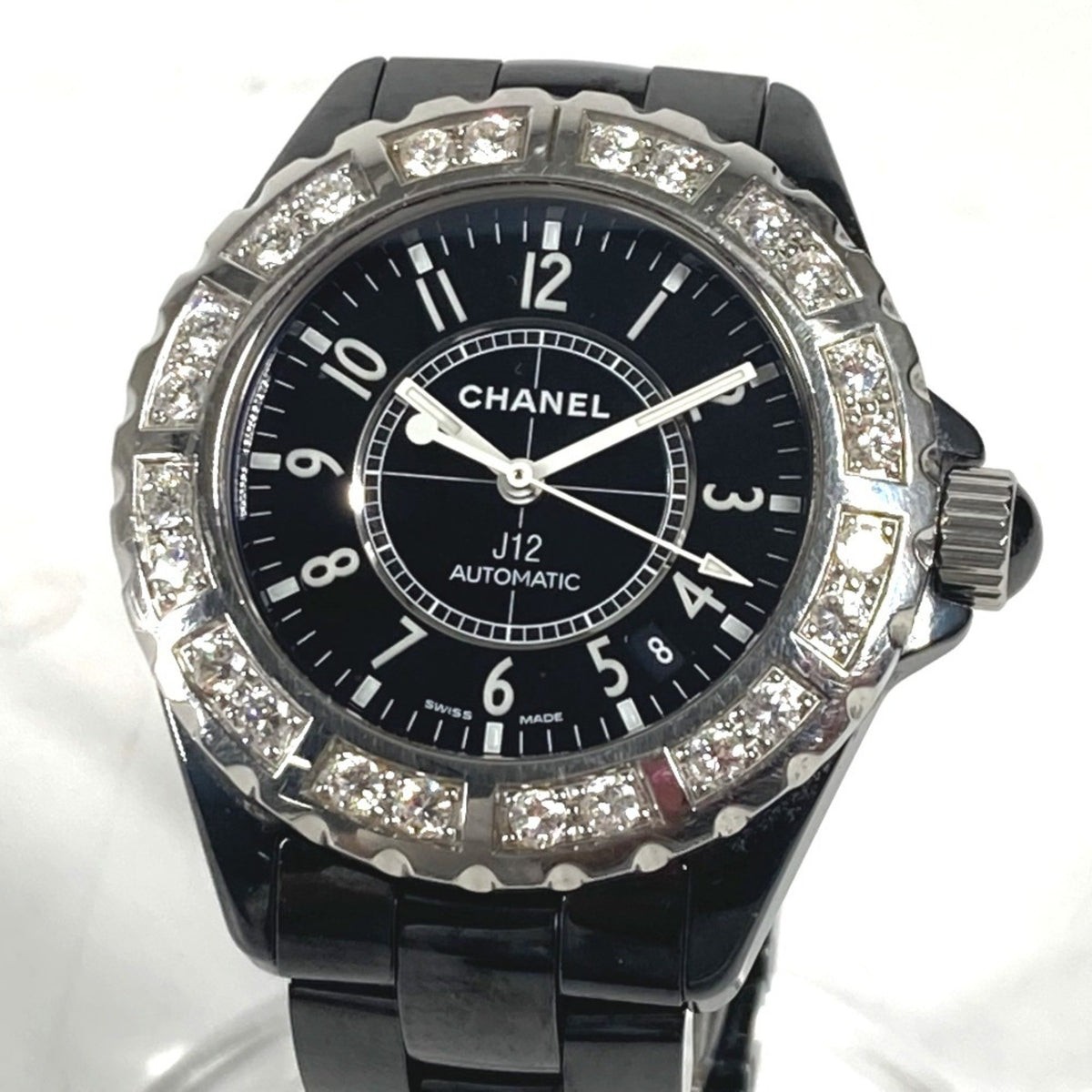 Pre-Owned CHANEL H1174 J12 Diamond Bezel Watch Men's Ceramic SS Black