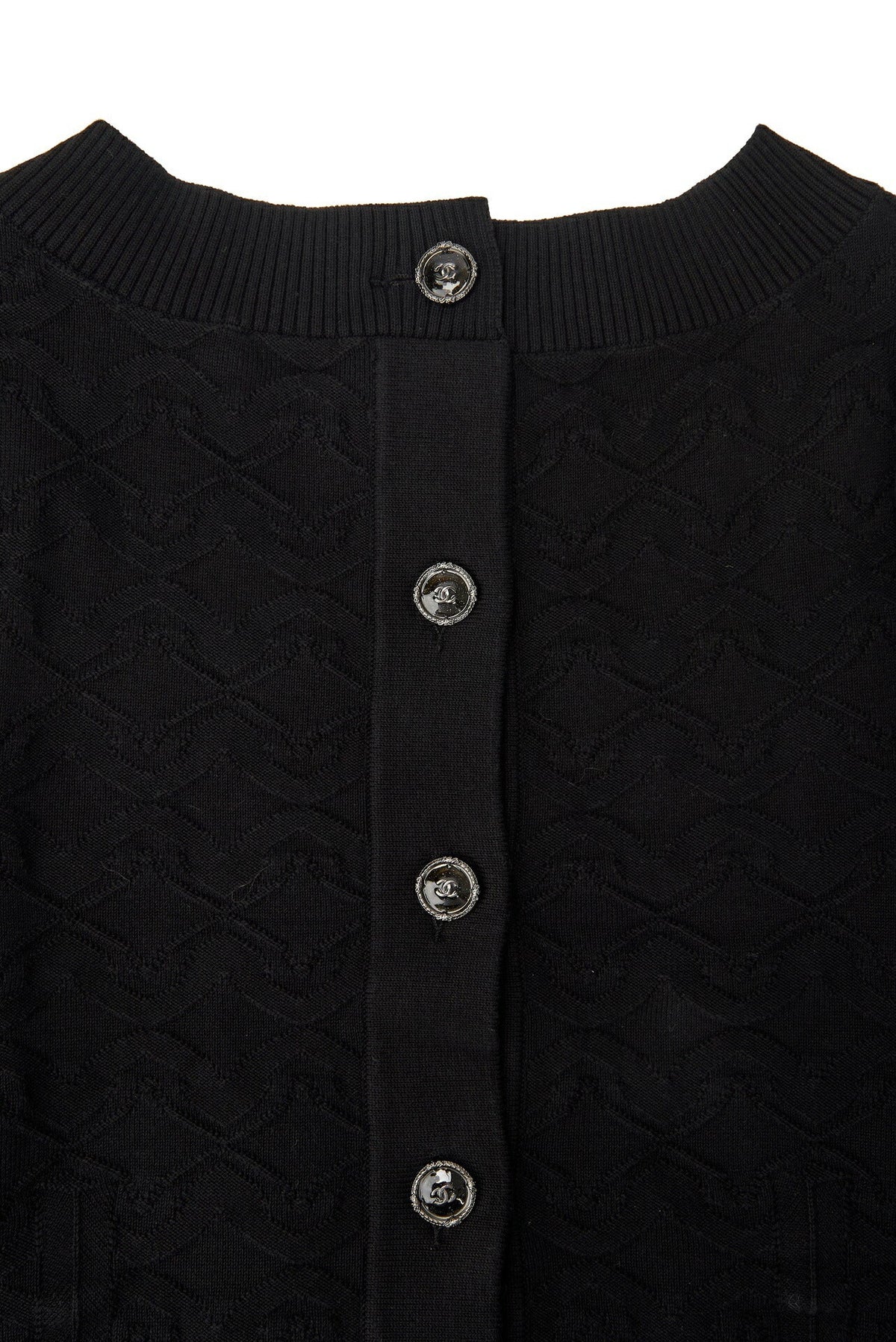 Pre-Owned Cardigan Knit Top, Coco Button Design, Cotton, Black, Gold-Tone Hardware, Pre-Owned