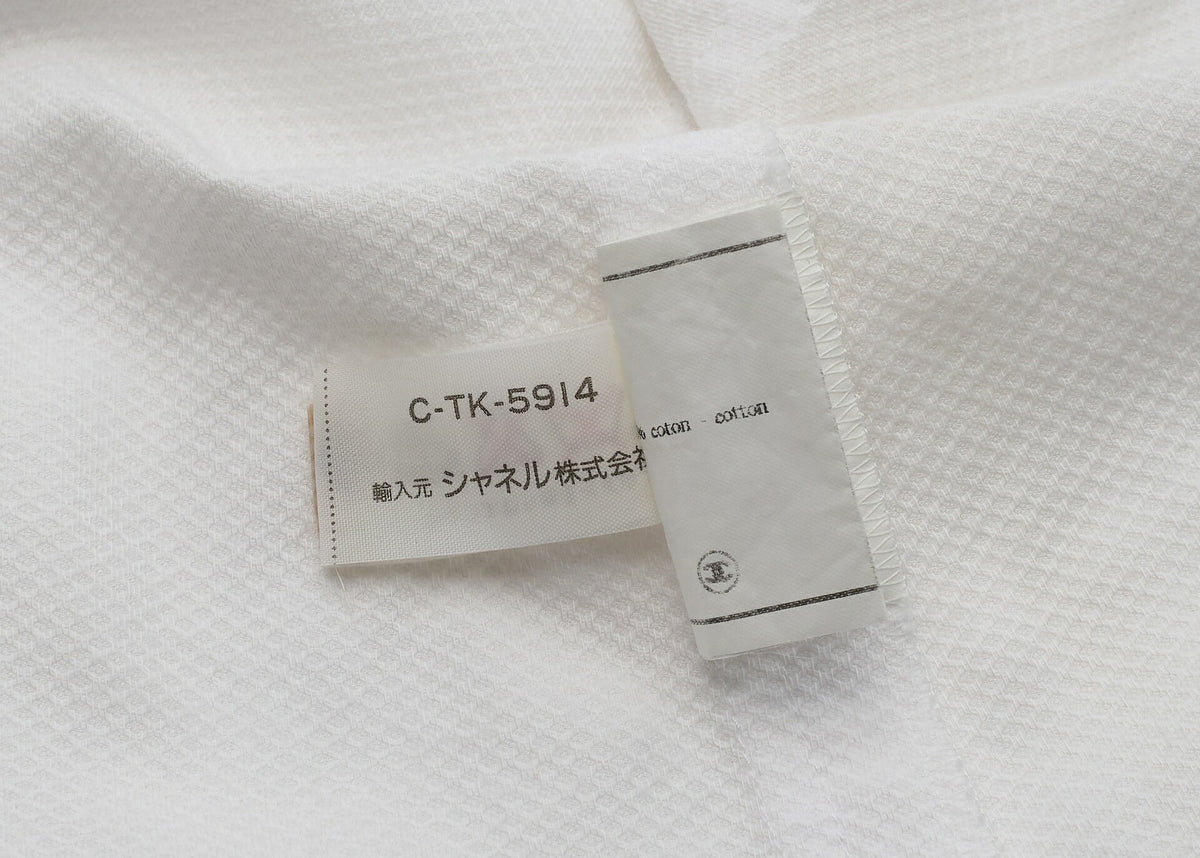The classic white color of this CHANEL Coco Button shirt makes it a versatile addition to any fashionista’s collection. Pair it effortlessly with skirts, trousers, or shorts to create a chic ensemble that stands out. The cut-and-sew craftsmanship guarantees a refined fit that flatters your silhouette.