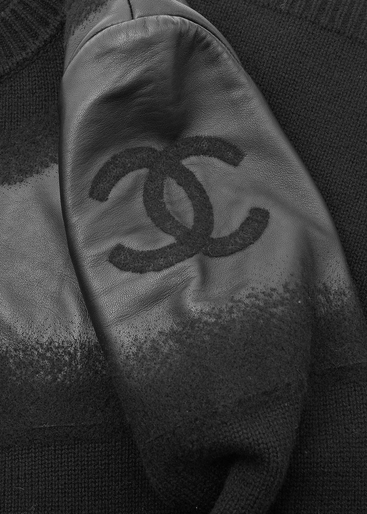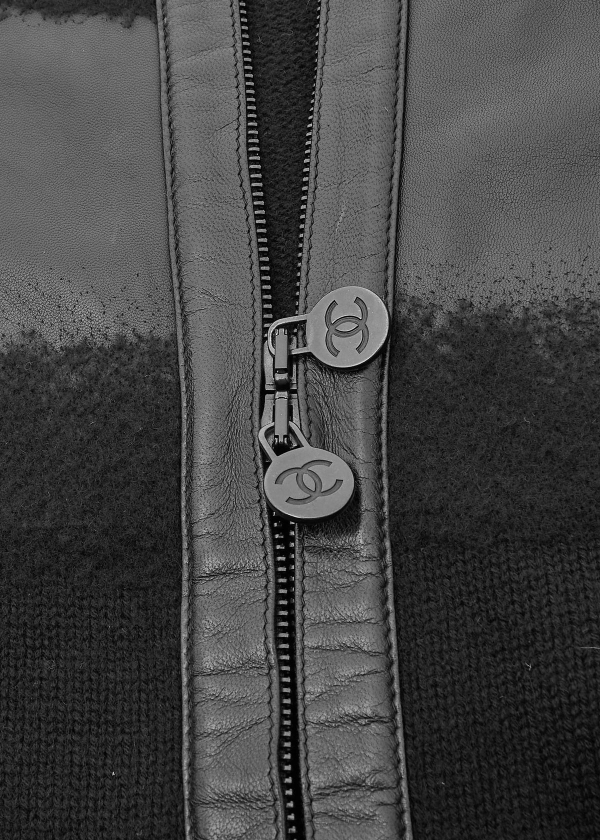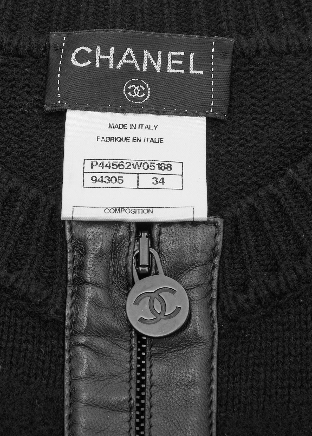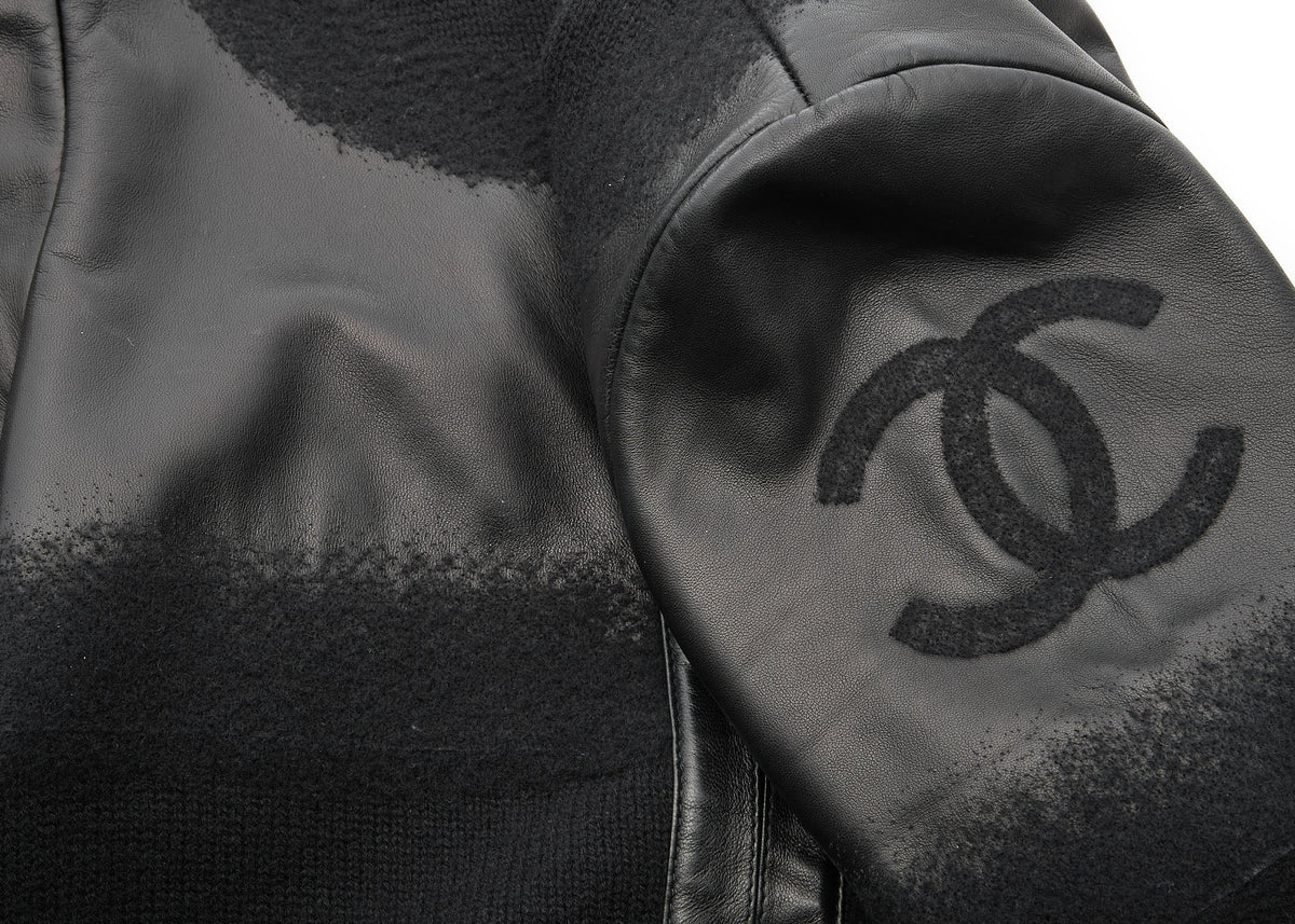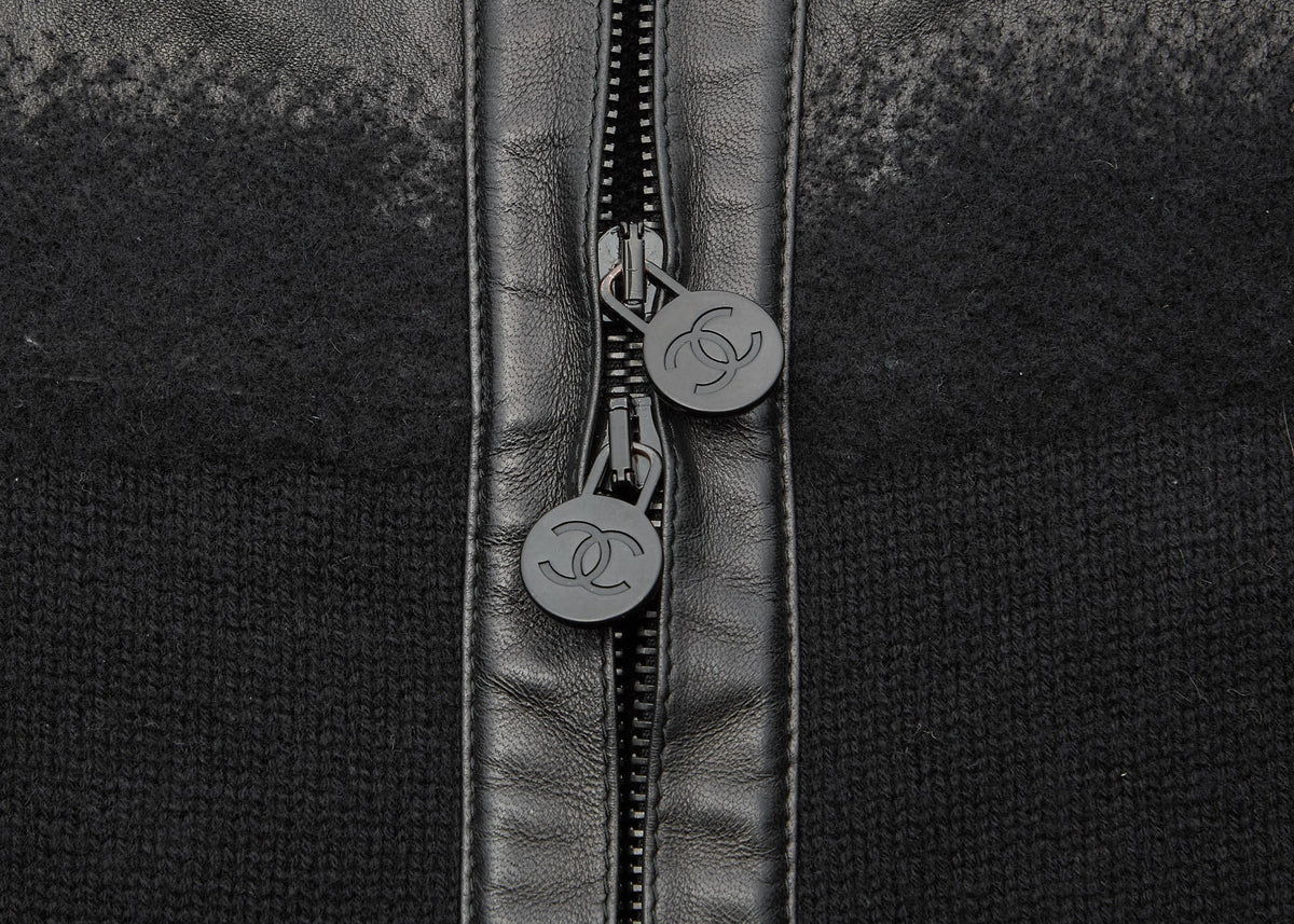 Pre-Owned Outerwear Jacket, Coco Mark, Leather, Black, Silver-Tone Hardware, Pre-Owned