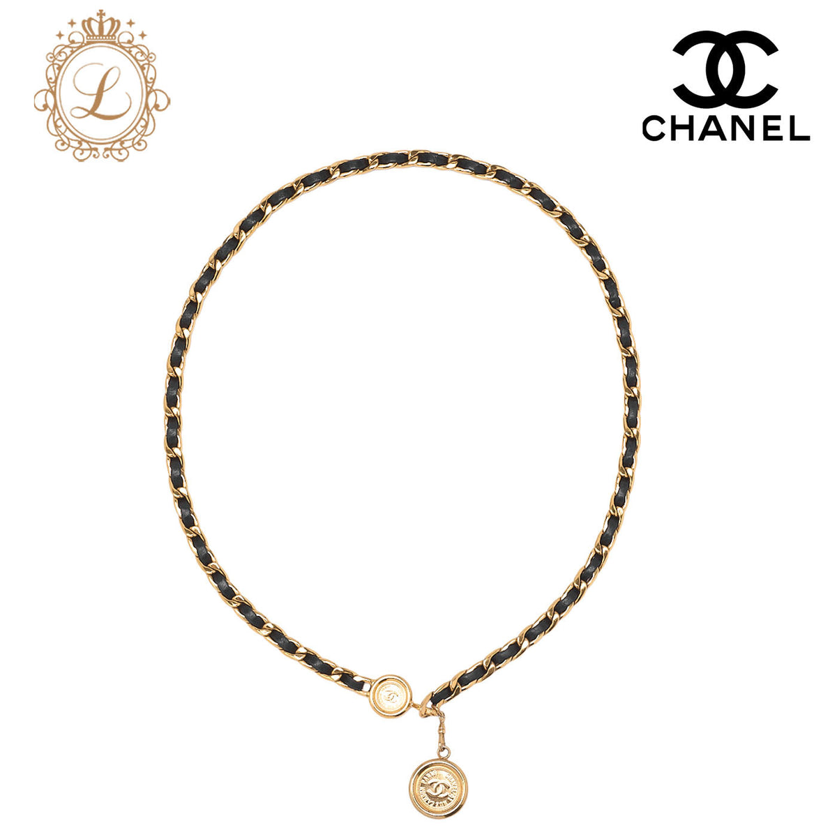 Pre-Owned Cocomark Chain Belt GP x Leather Black x Gold (Gold-Tone Hardware, Pre-Owned