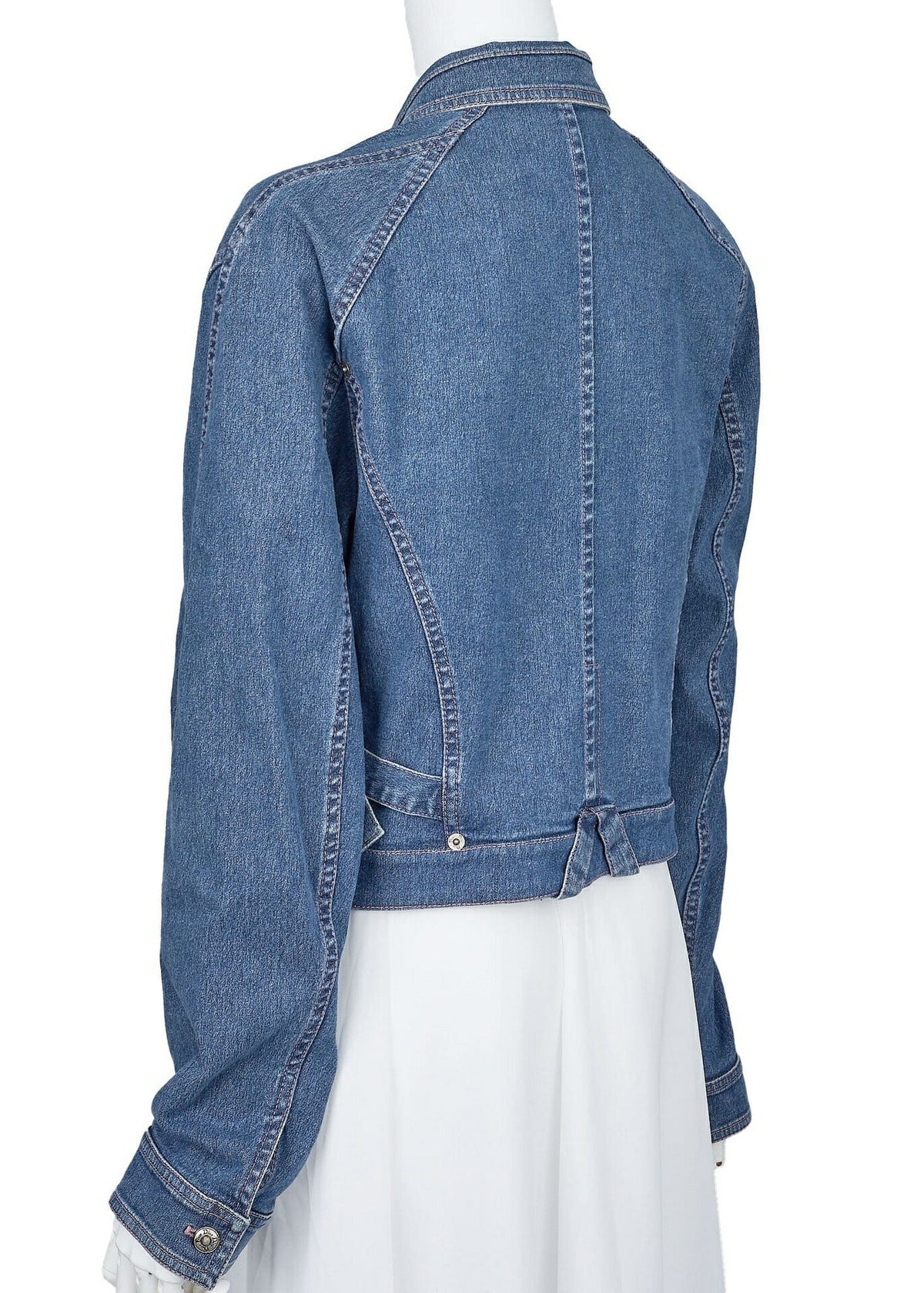 Available in a beautiful blue hue, this size 46 denim jacket features: