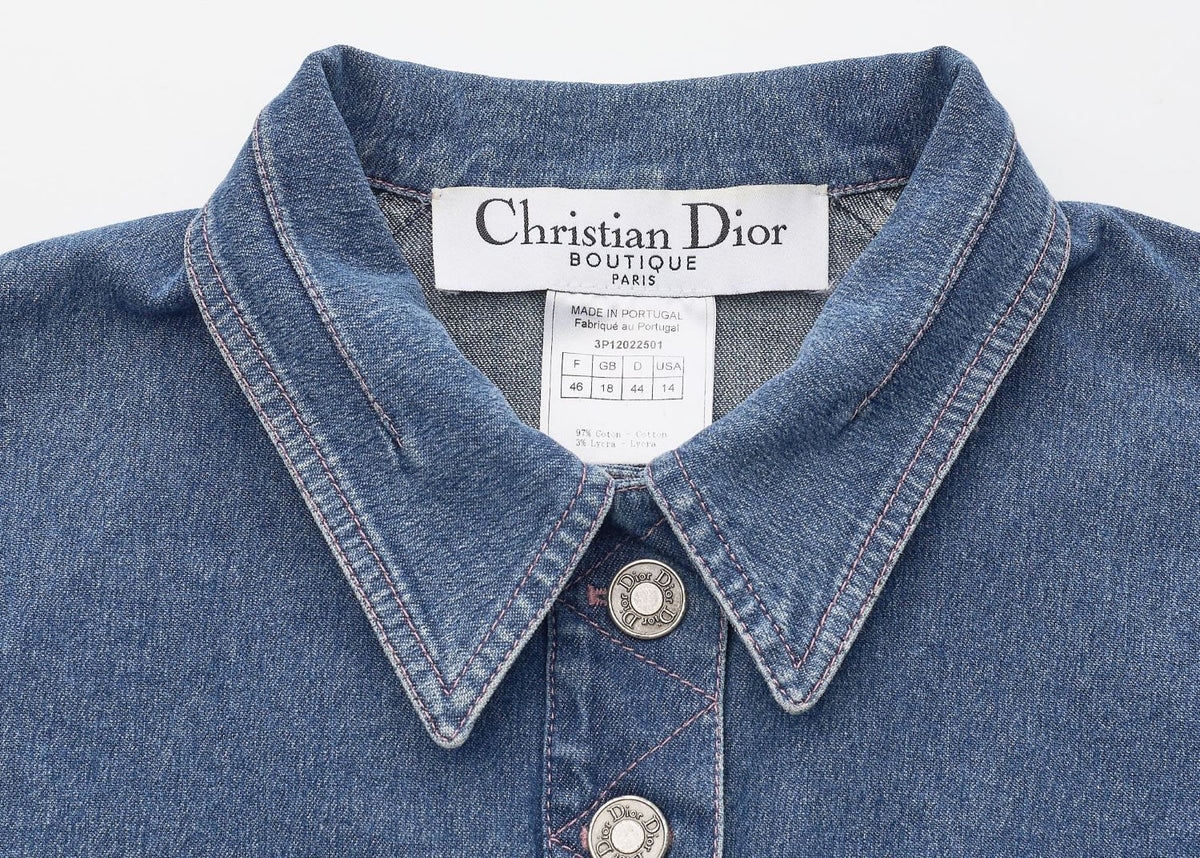 Elevate your wardrobe with the Dior Dior Logo Button Denim Jacket, a stunning piece of outerwear that seamlessly combines style and sophistication. This long sleeve top, crafted from a premium cotton blend (97% cotton, 3% other fibers), promises both comfort and durability, making it a versatile addition to any fashionista's collection.