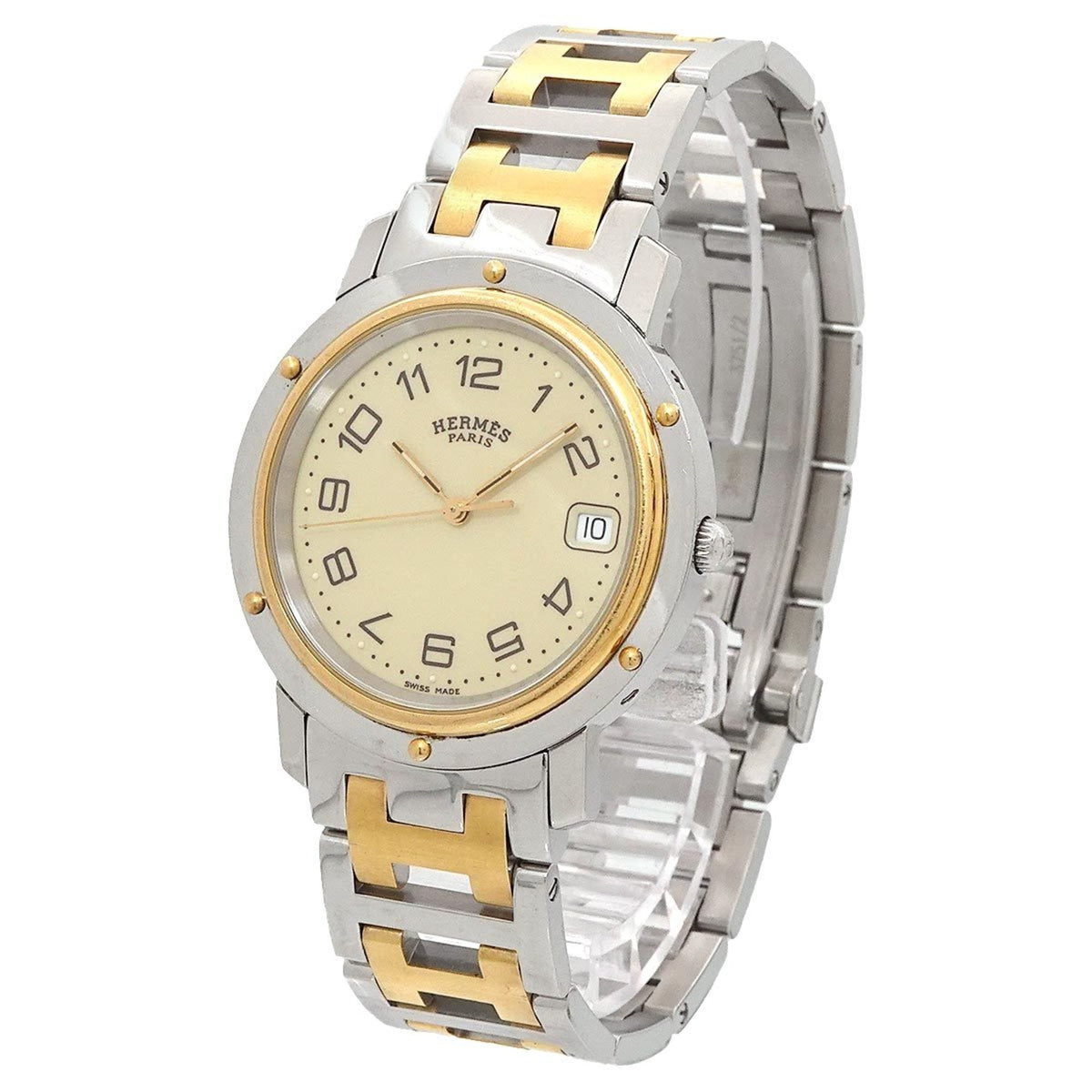 Pre-Owned Herm?s Clipper CL6 720 Men's Ivory Quartz Watch with Date Display, Two-Tone