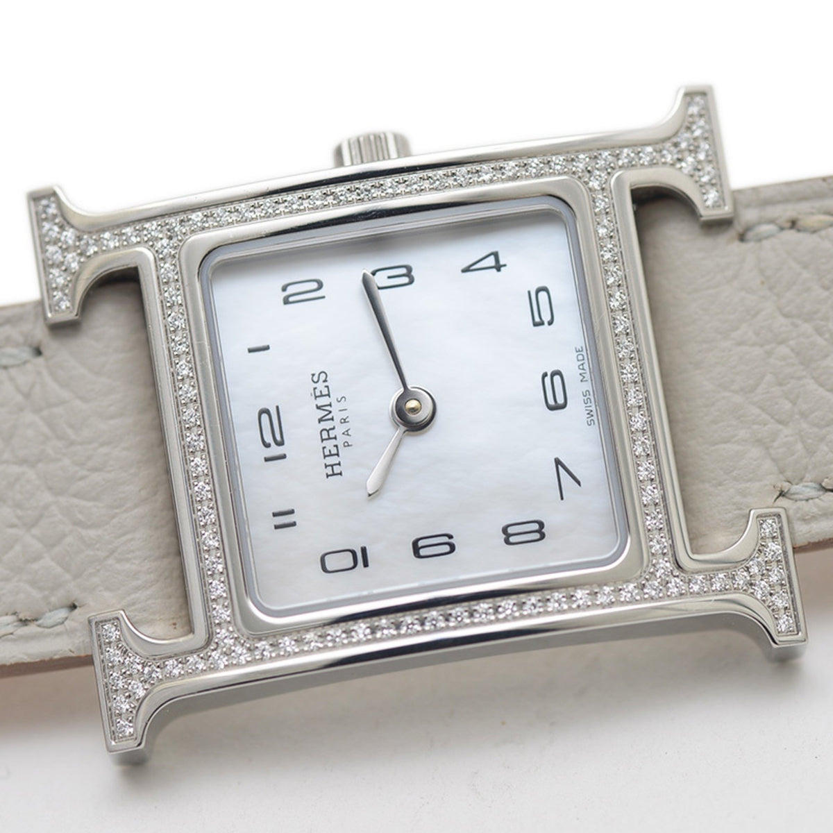 Pre-Owned Herm?s H Watch Mini Women's Shell Dial Stainless Steel Diamond Quartz Movement HH1.235