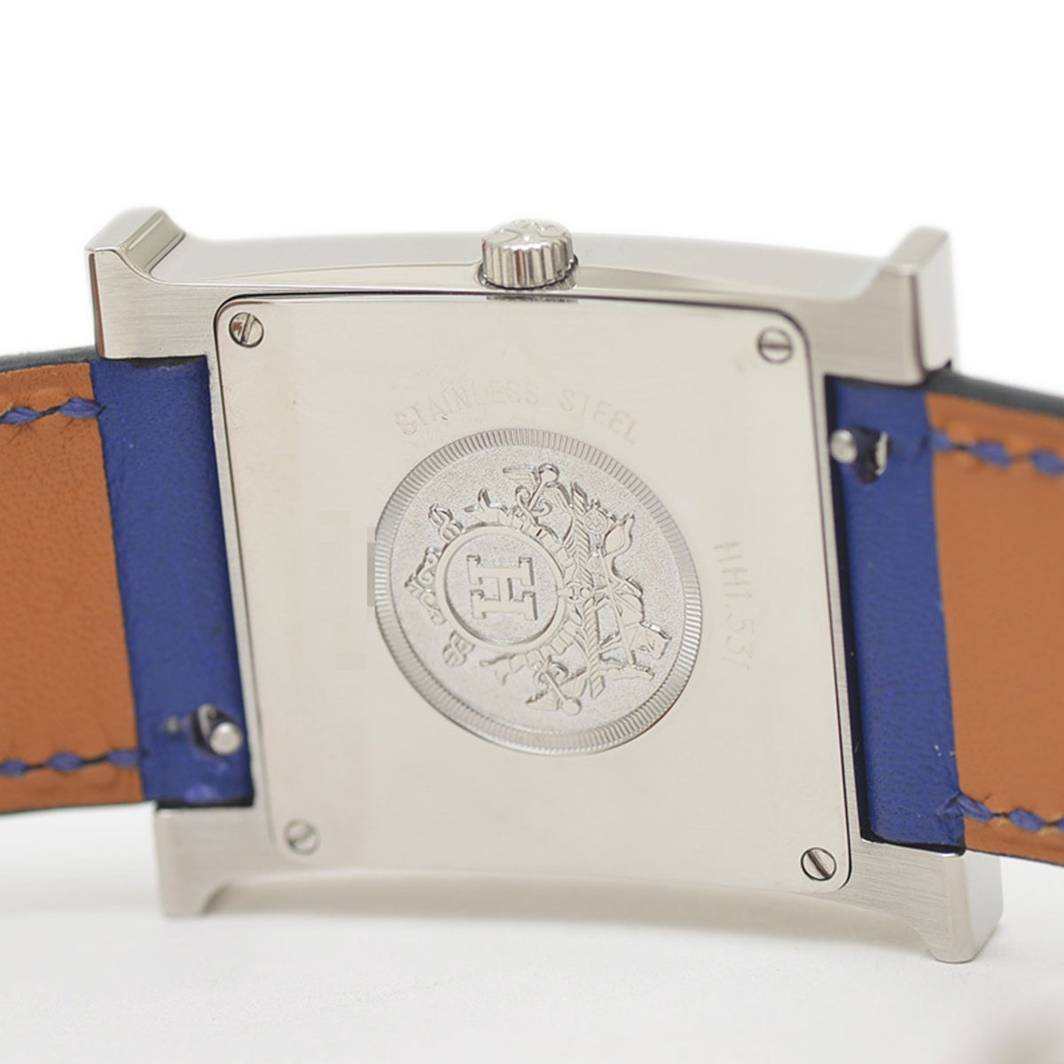 Pre-Owned Herm?s H Watch PM Women's Shell Dial with Stainless Steel Diamonds and Leather Strap, Quartz Movement, HH1.531