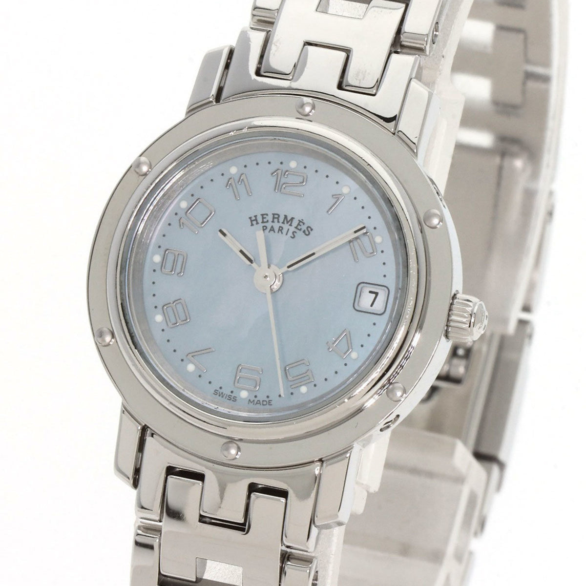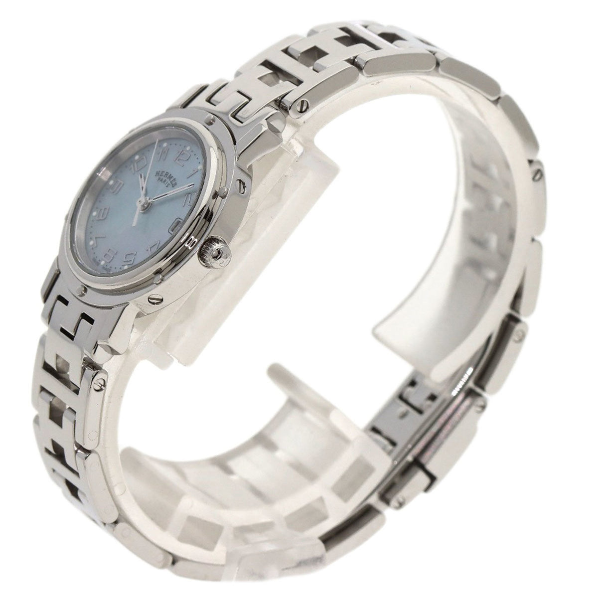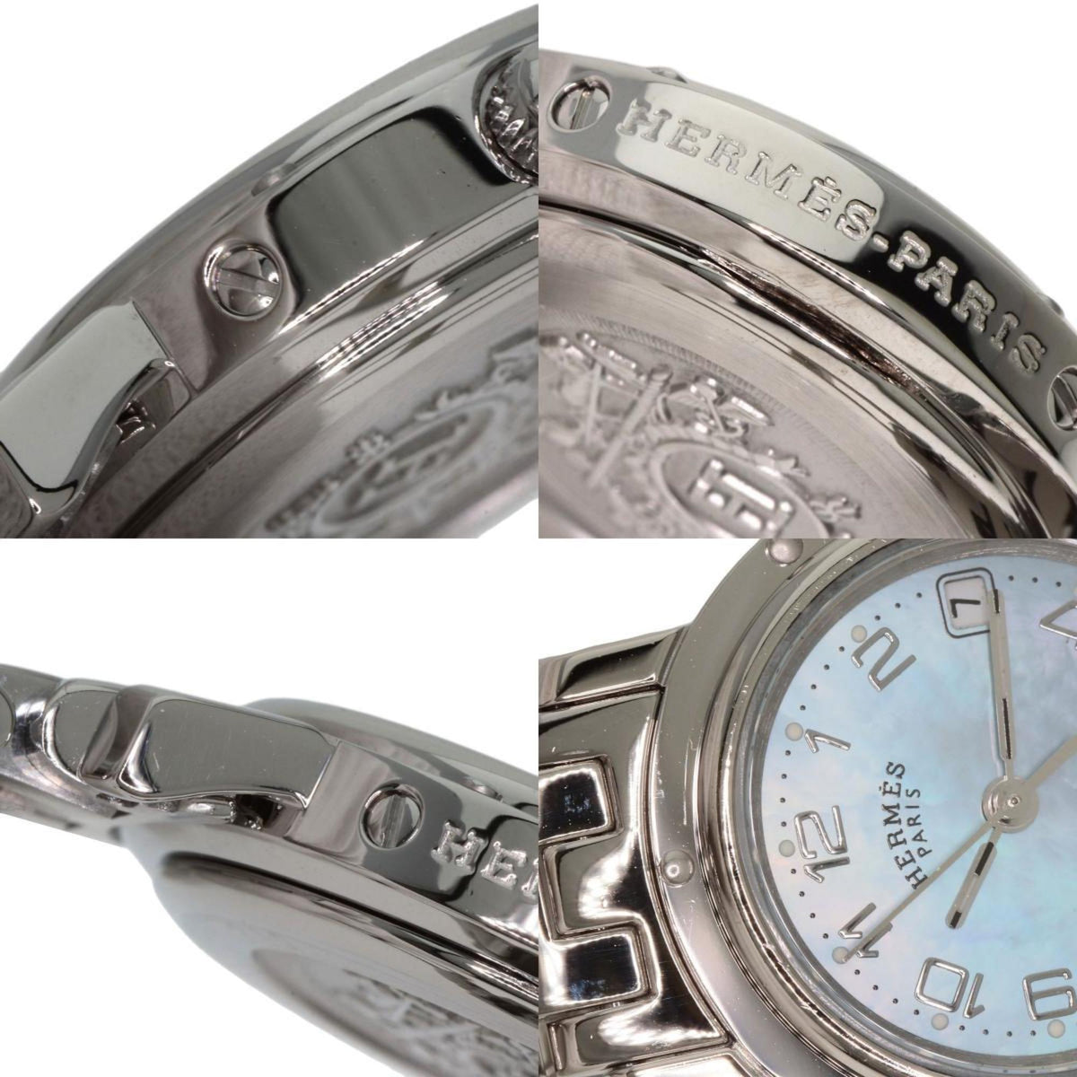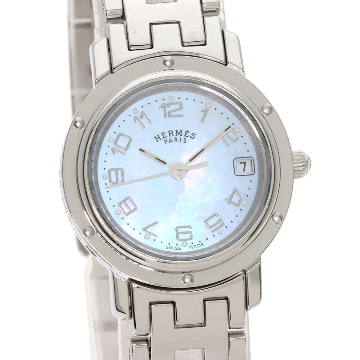 Pre-Owned Hermes CL4.210 Clipper Nacr? New Buckle Watch Stainless Steel SS Ladies HERMES