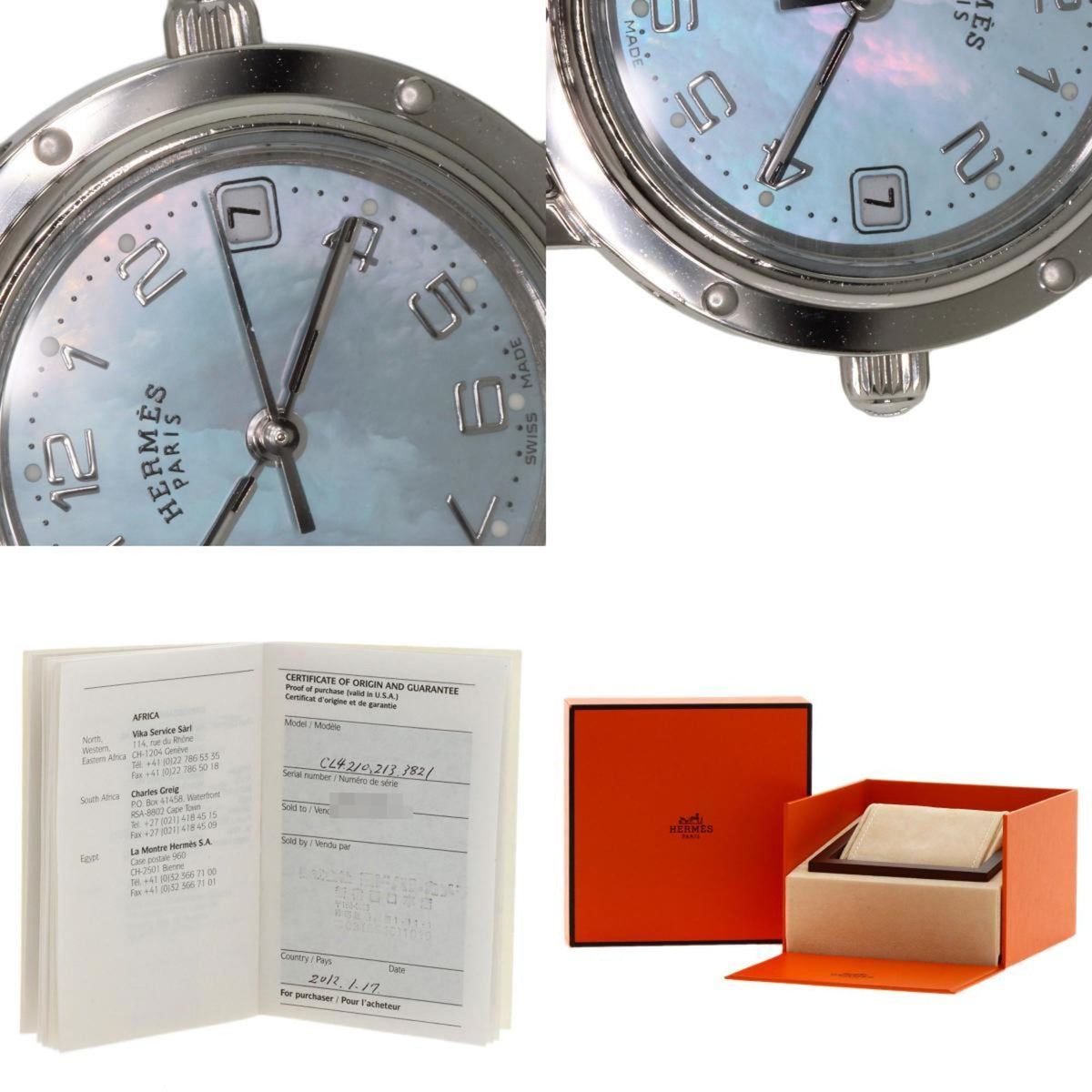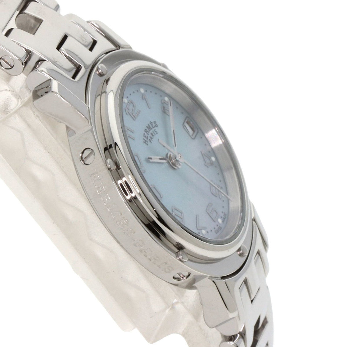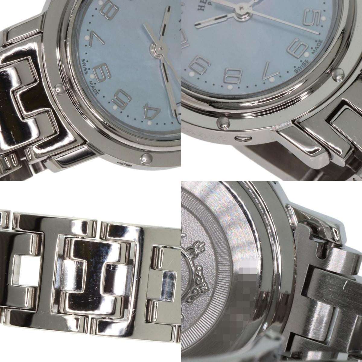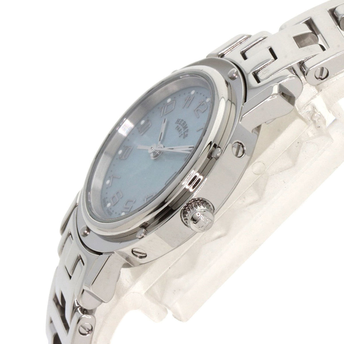 Pre-Owned Hermes CL4.210 Clipper Nacr? New Buckle Watch Stainless Steel SS Ladies HERMES