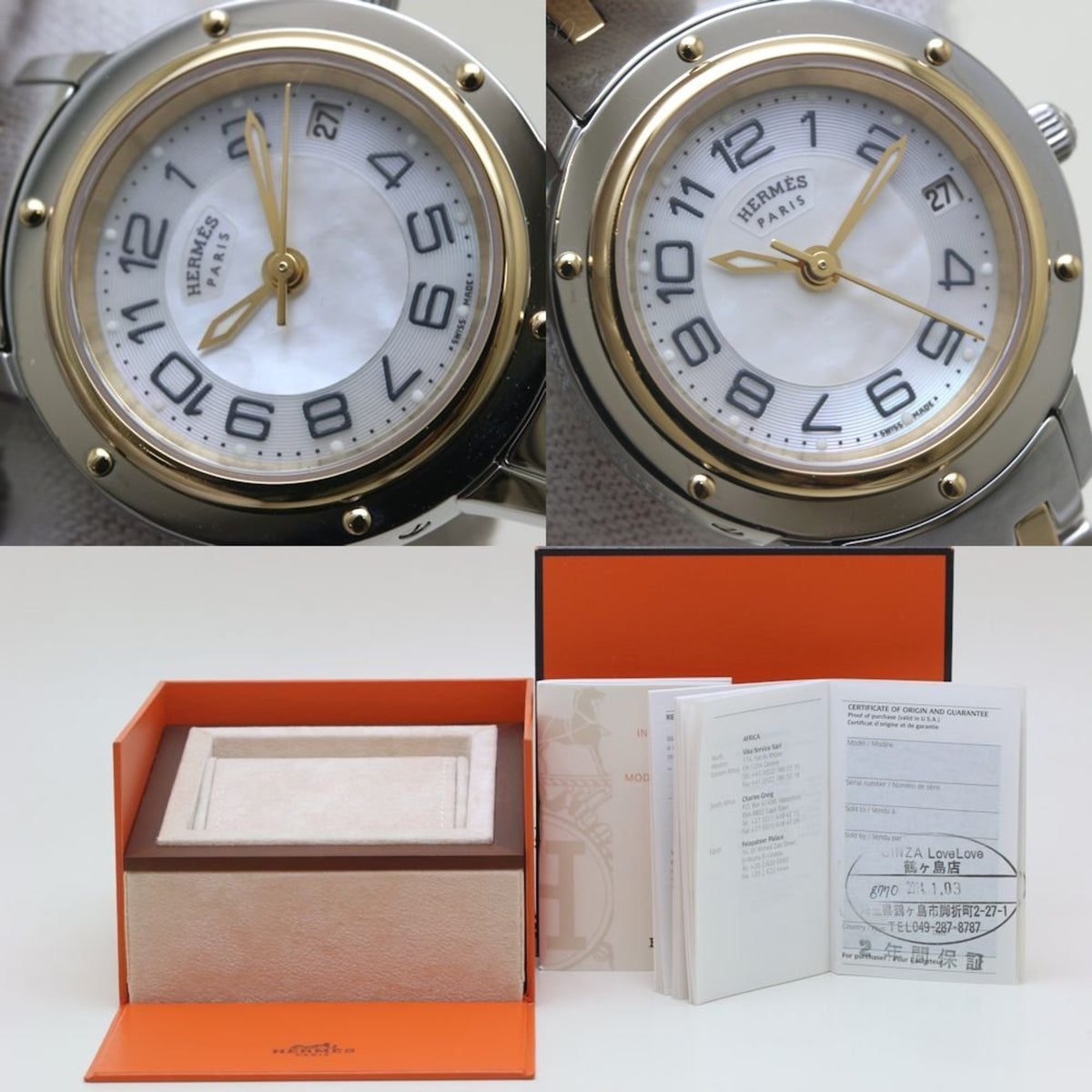 Pre-Owned HERMES Clipper Nacr? Classic CP1.220.212 4971 GP Stainless Steel Ladies 39841 Watch