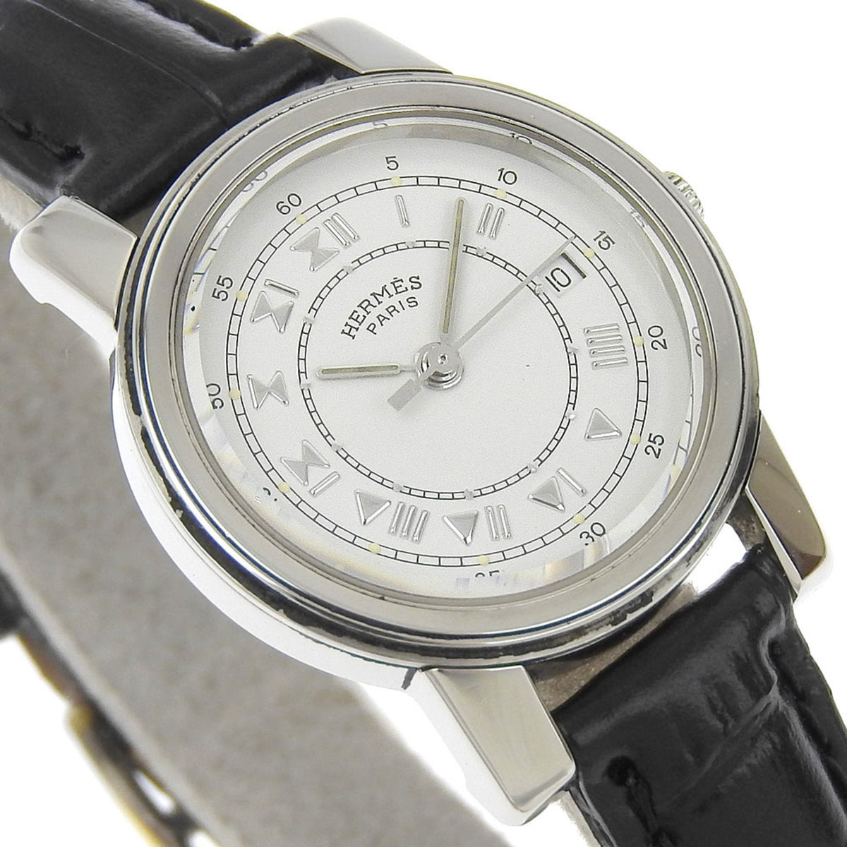 Pre-Owned Hermes HERMES Carrick Watch Stainless Steel x Embossed Leather Quartz Analog Display White Dial Women's H210624616
