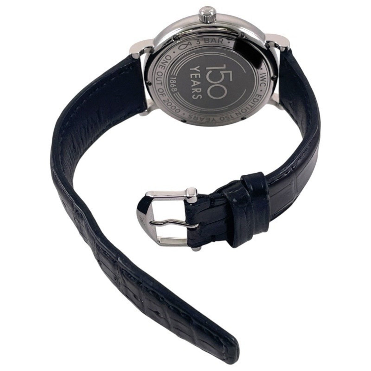 Pre-Owned IWC International Watch Company Portofino IW356518 Stainless Steel Leather Men's Watch, 150 Years, Limited Edition of 2000 Pieces, Blue Dial