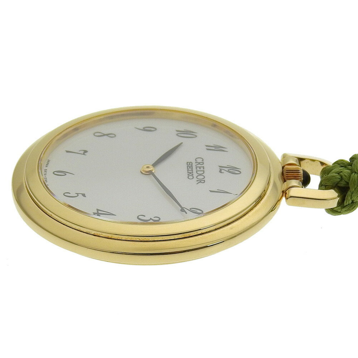 Pre-Owned Like new Seiko Credor 5A74 0670 White dial wristwatch 18KYG Quartz Battery 30mm Men's Women's 2-hand pocket watch
