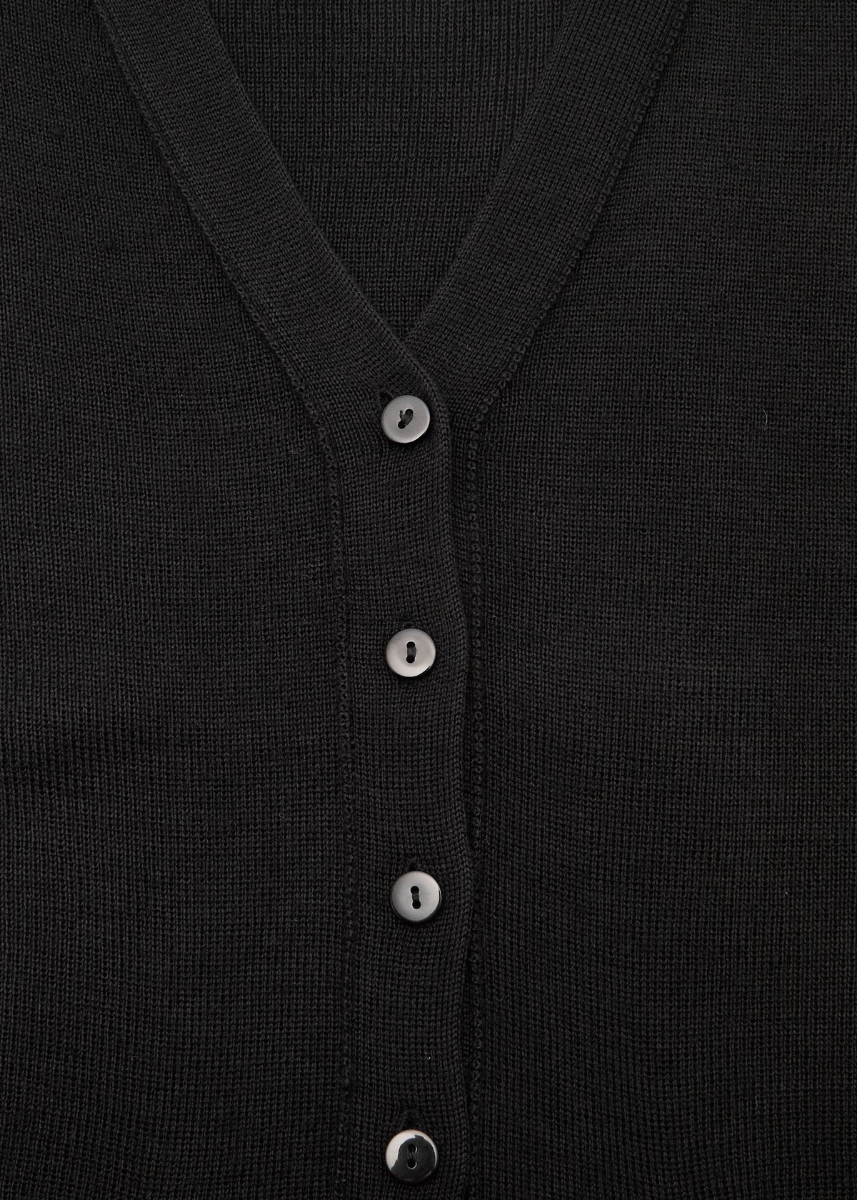 Pre-Owned Cardigan, Long Sleeve, Cut and Sew, Wool Blend, Black, Silver-Tone Hardware, Pre-Owned