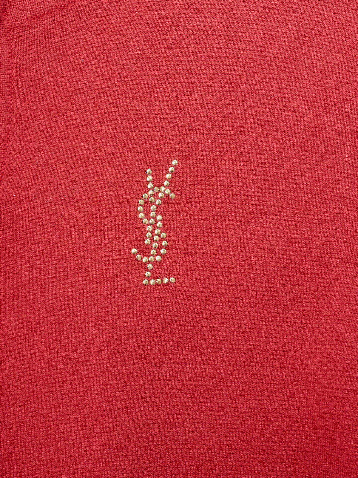 Elevate your wardrobe with the SAINT LAURENT Logo Cardigan Knit Outer Tops L Red Brand Apparel Used - Very Good. This exquisite cardigan seamlessly combines luxury with comfort, making it an essential piece for any fashion-savvy individual.