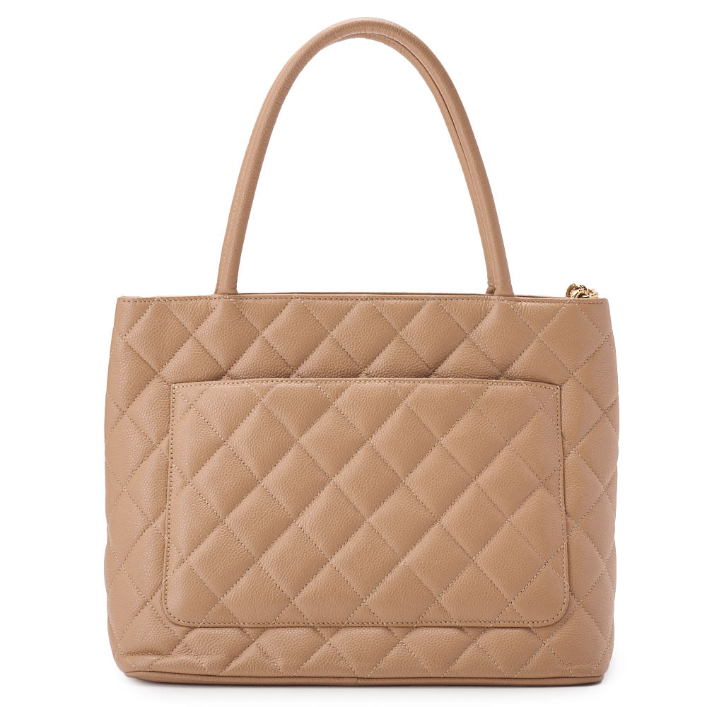 Pre-Owned Tote Bag Matelasse Reprint Caviar Skin Beige Gold-Tone Hardware Pre-Owned