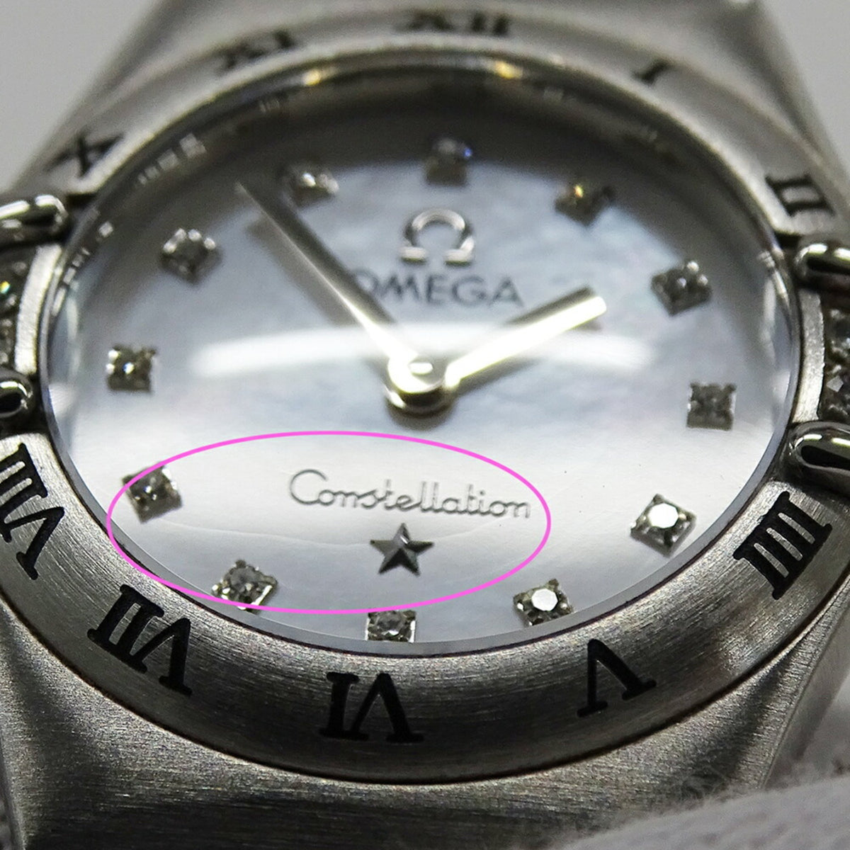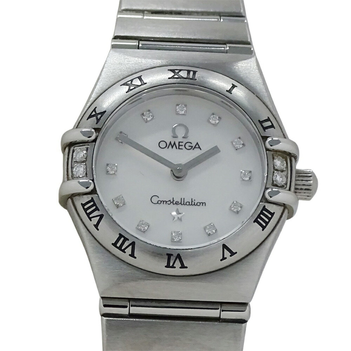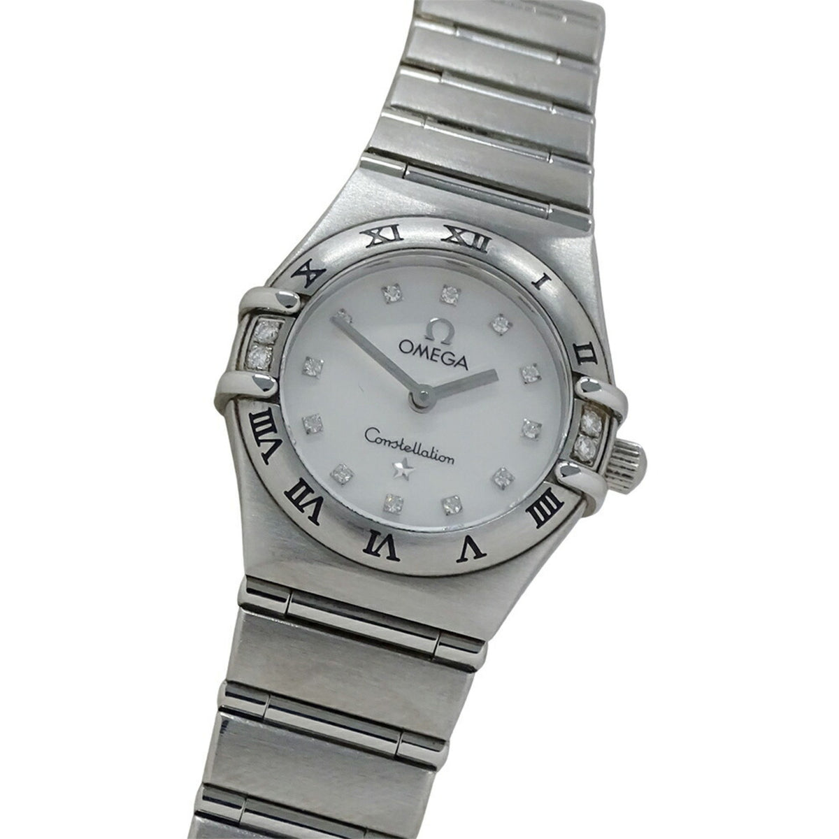Pre-Owned OMEGA Constellation Mini 1567.76 Watch for Women, 12P Bezel, Diamond, White Shell, Quartz, Stainless Steel, SS, Silver, Polished