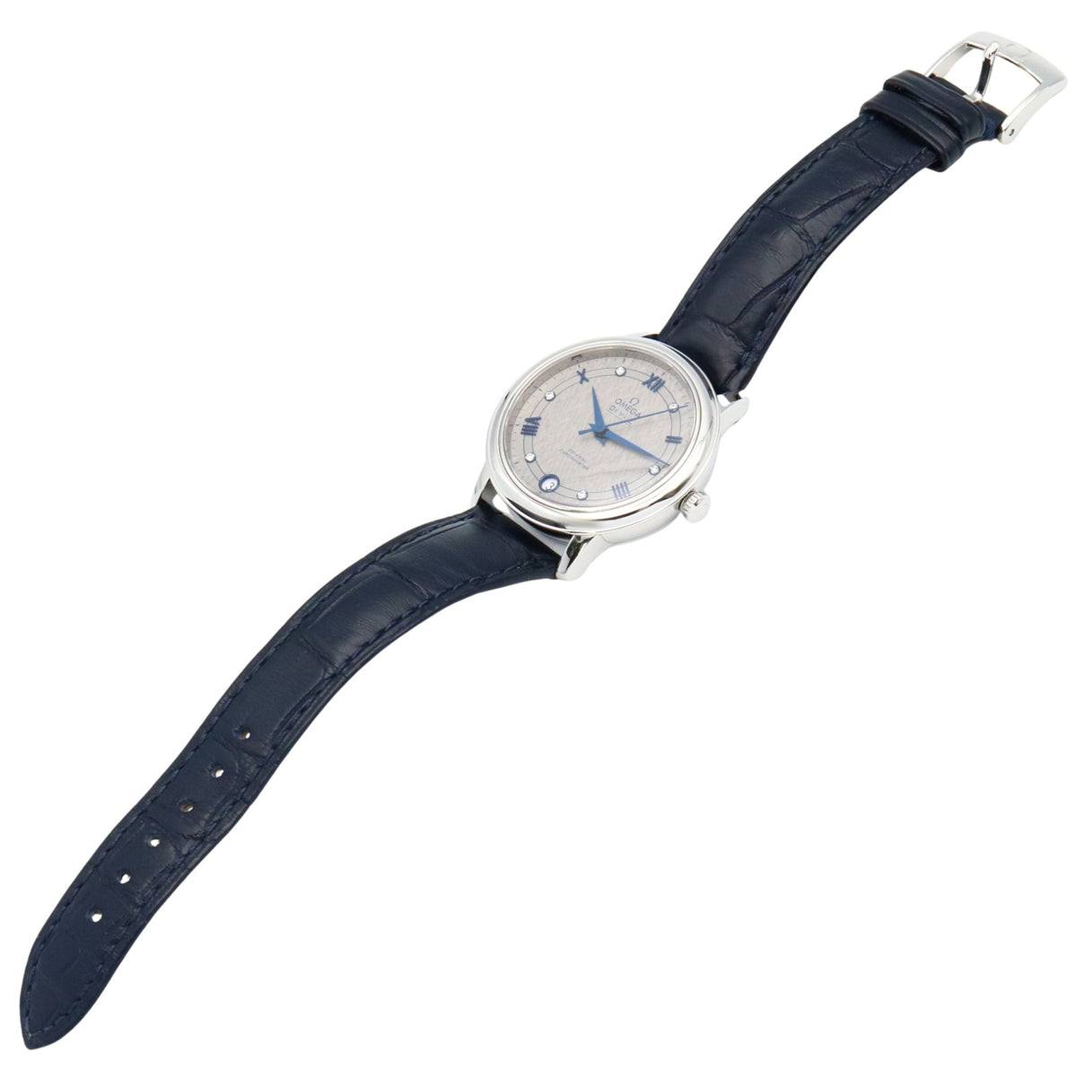 Pre-Owned OMEGA De Ville Prestige Watch, Diamond-Set Stainless Steel with Leather Strap, Gray, Women's, 424.13.33.20.56.002