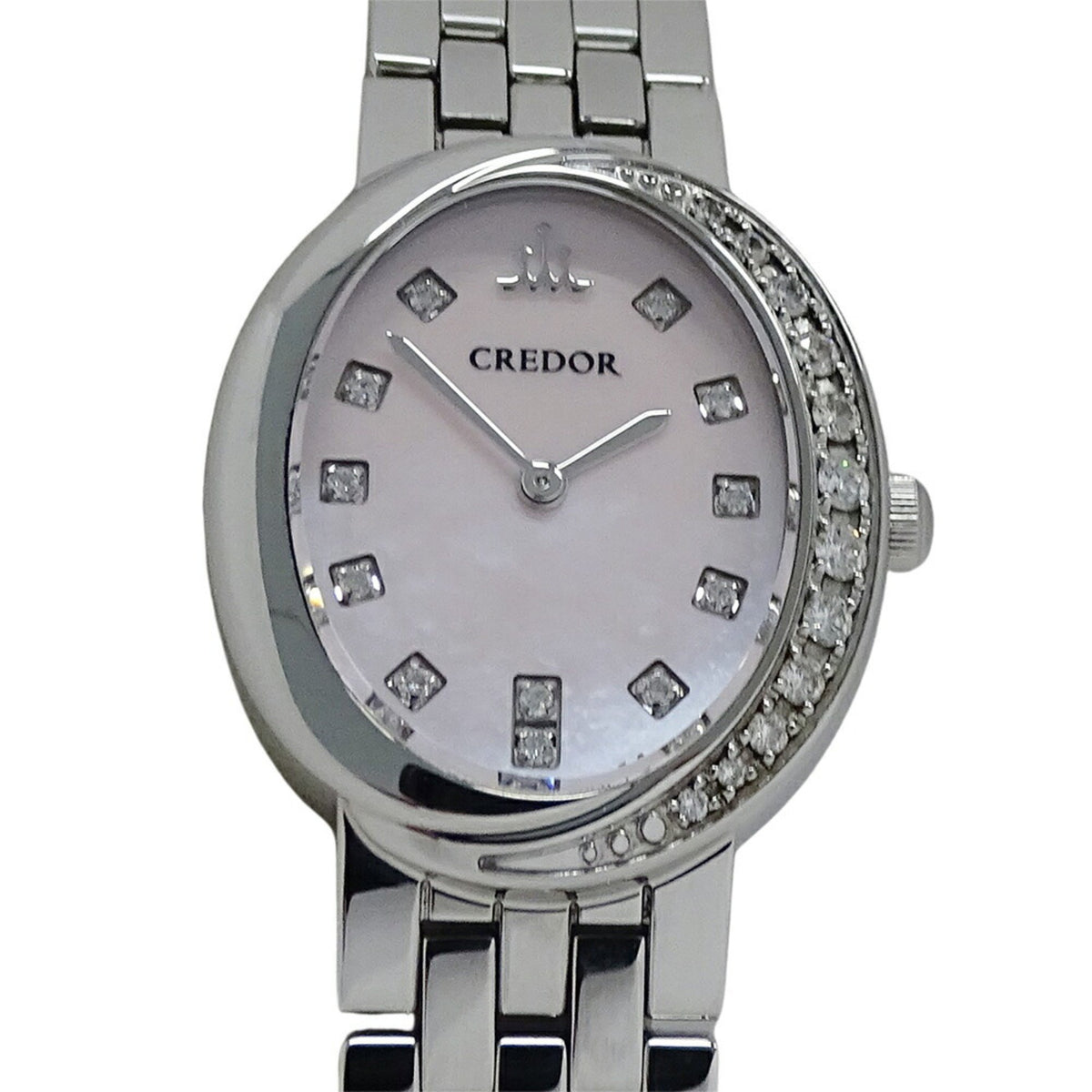 Pre-Owned Seiko Credor Signo 5A70-0BP0 GSWE855 Women's Watch with Pink Shell and Diamonds, Quartz Movement, Stainless Steel, Silver, Polished