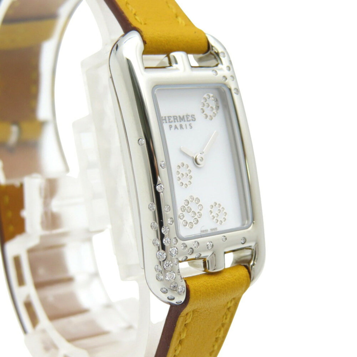 Pre-Owned Unused Herm?s Nantucket Diamond Chaine d'Ancre NA2.132 Quartz Watch with Diamonds, Stainless Steel Leather, White Dial, 1528, Women's