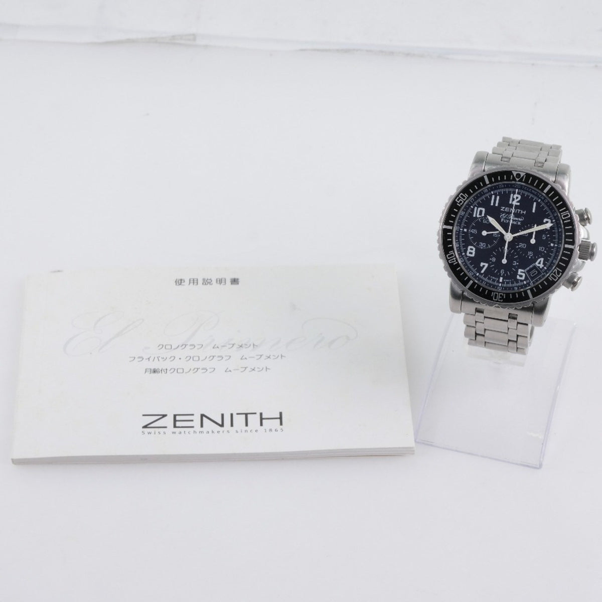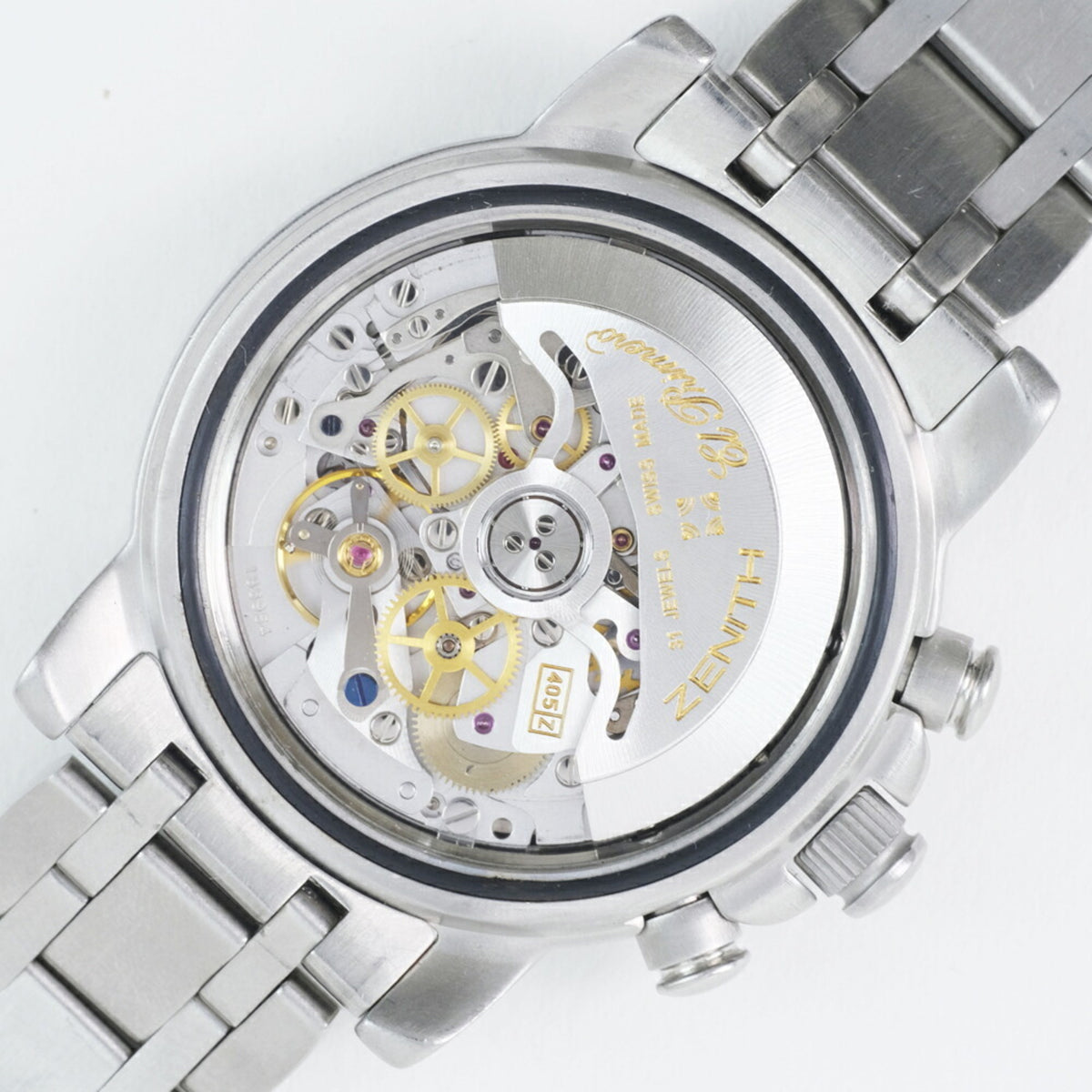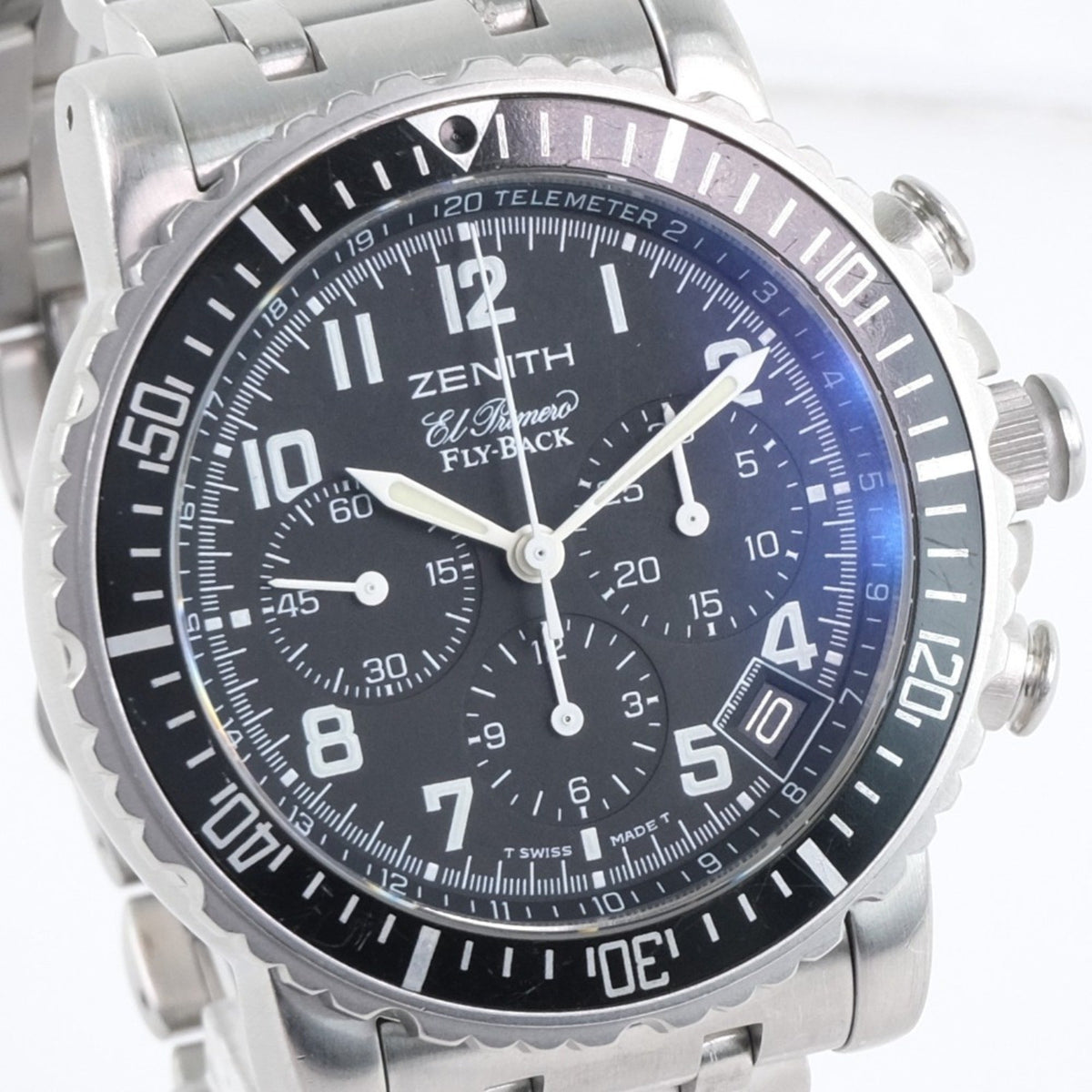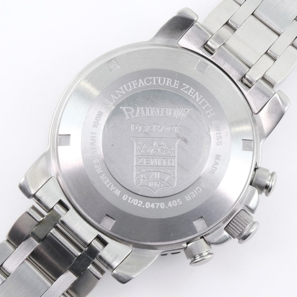 Pre-Owned Zenith Rainbow Black 01/02.0470.405 Stainless Steel Automatic Chronograph Men's Dial Watch